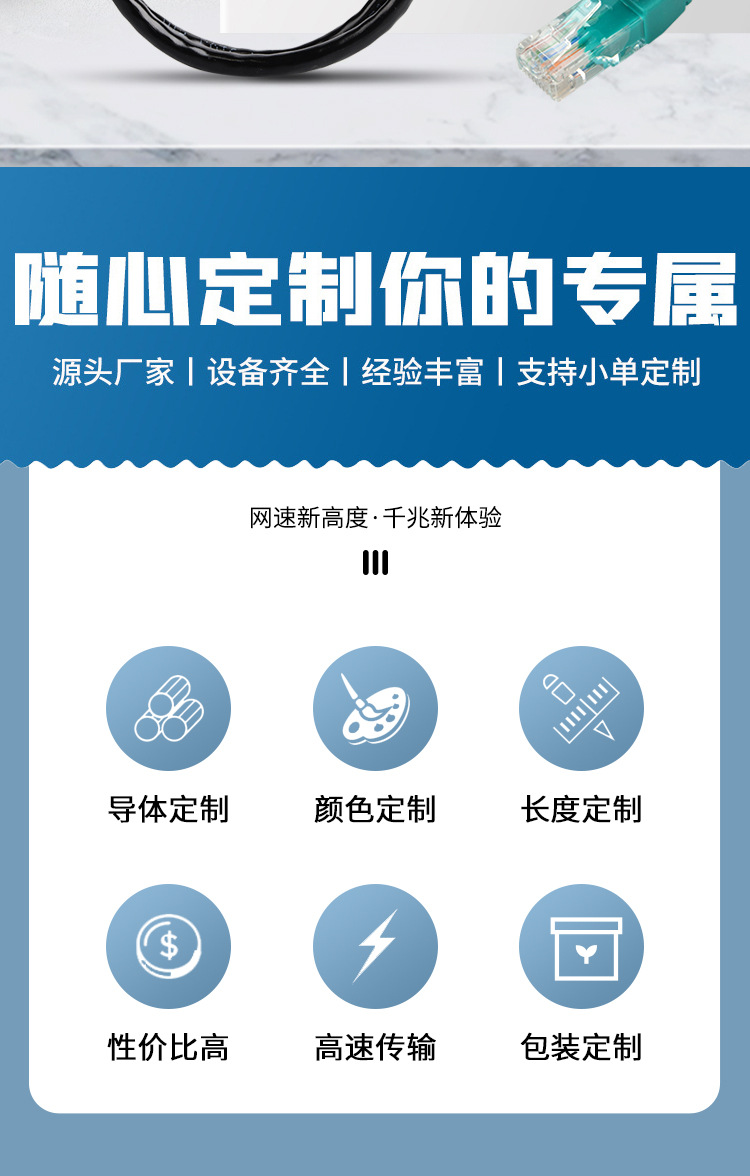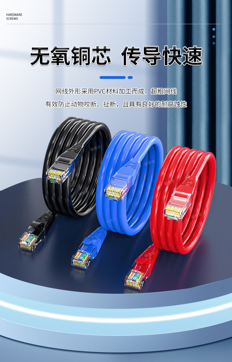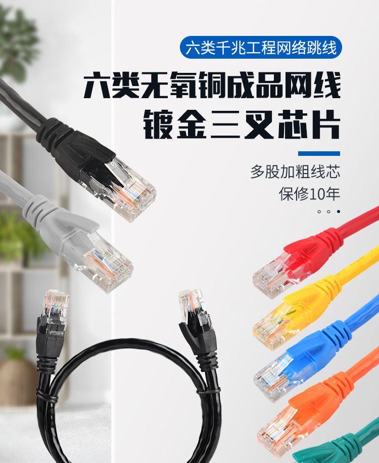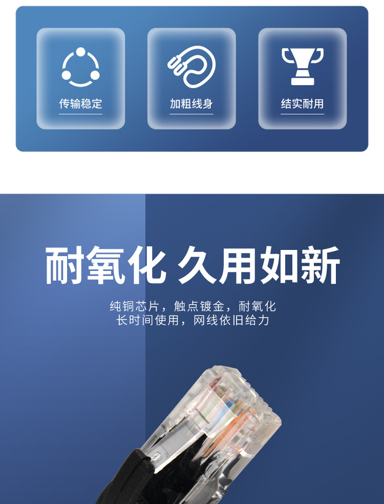 高品质成品机制网线:8芯全通,内外新料,镀金插头,确保10年以上寿命兼容千兆、百兆、网络。