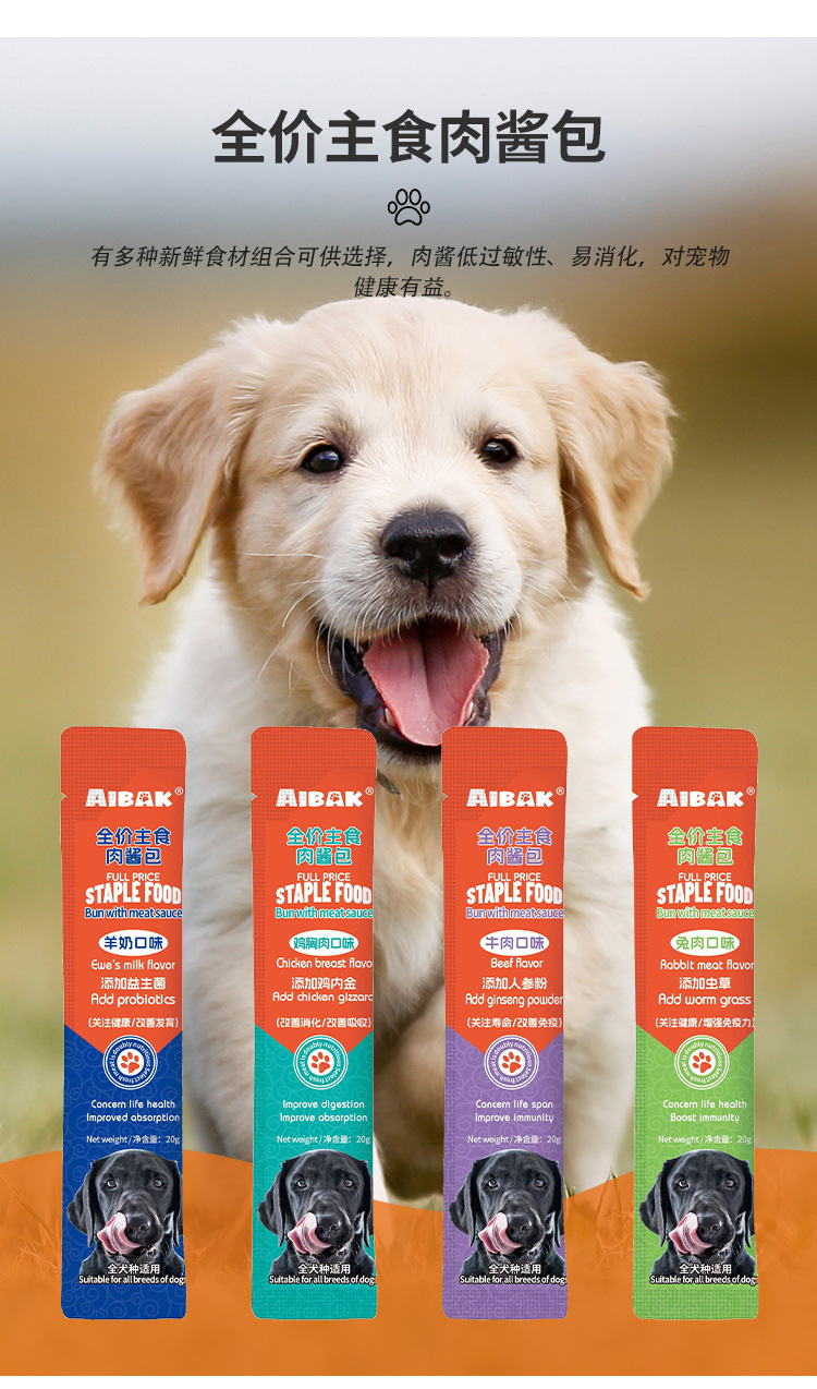 Лакомства для собак Aibak Основной корм Собачьи полоски Тедди Консервированные питательные полоски для собак Оптовая упаковка пробиотических влажных кормов