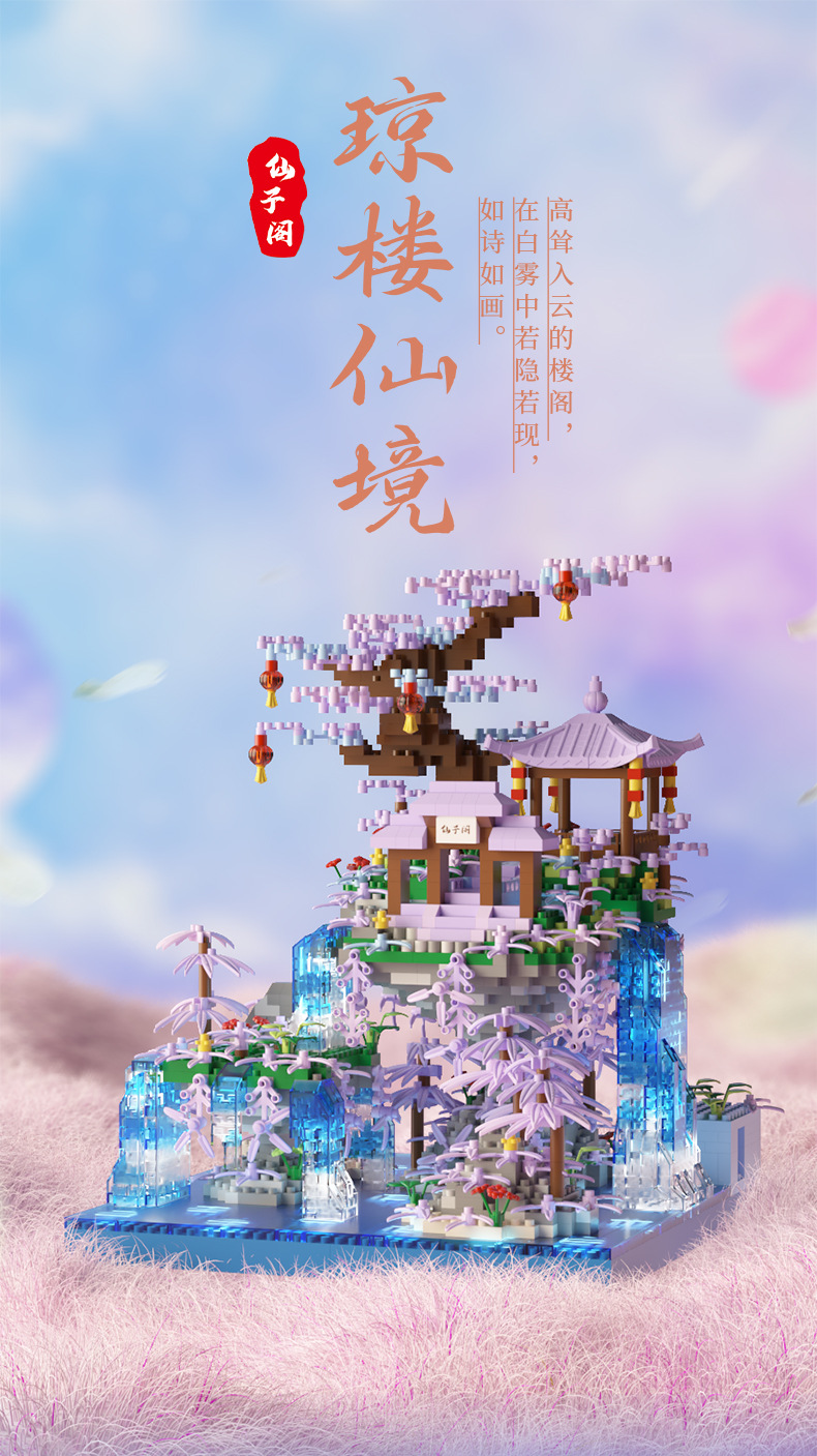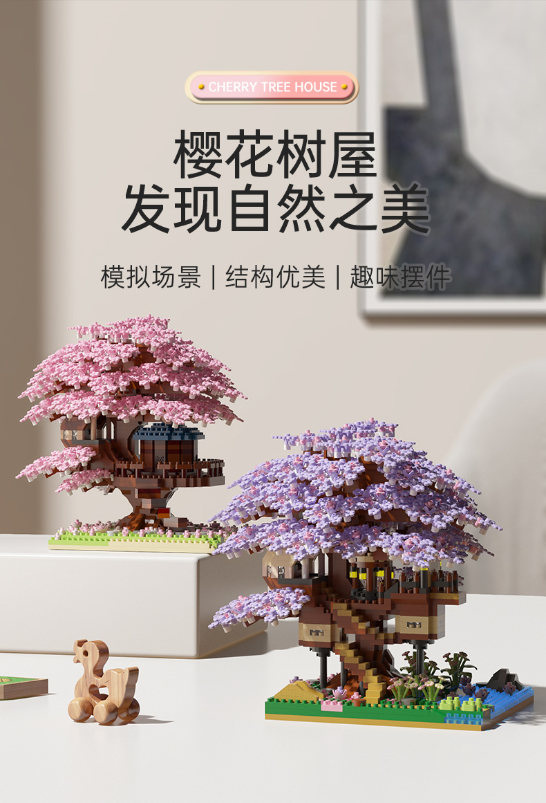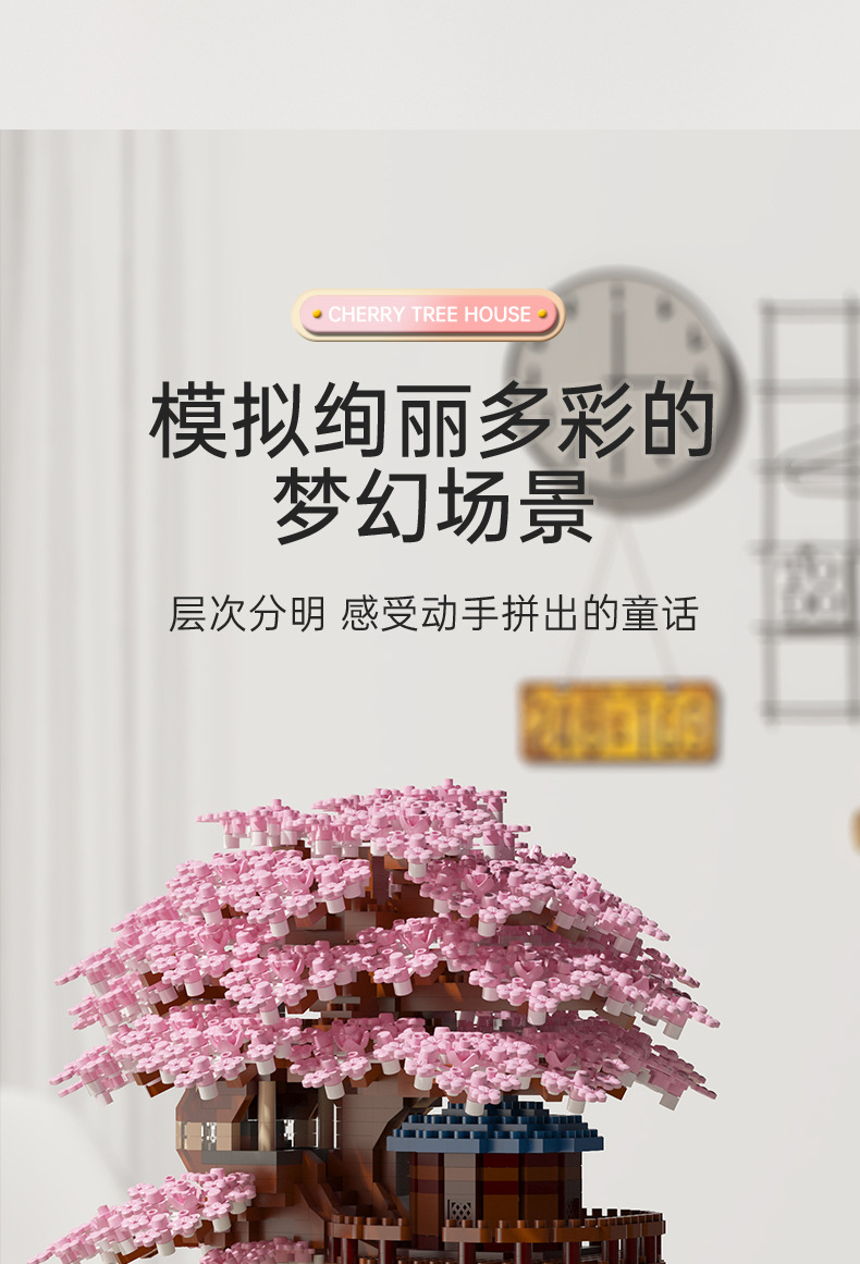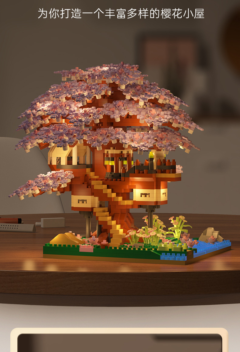 Кросс-браузерный домик сакуры совместим с домом персикового цветка высокое здание блоков сборки модель микро-частиц образовательная игрушка оптом