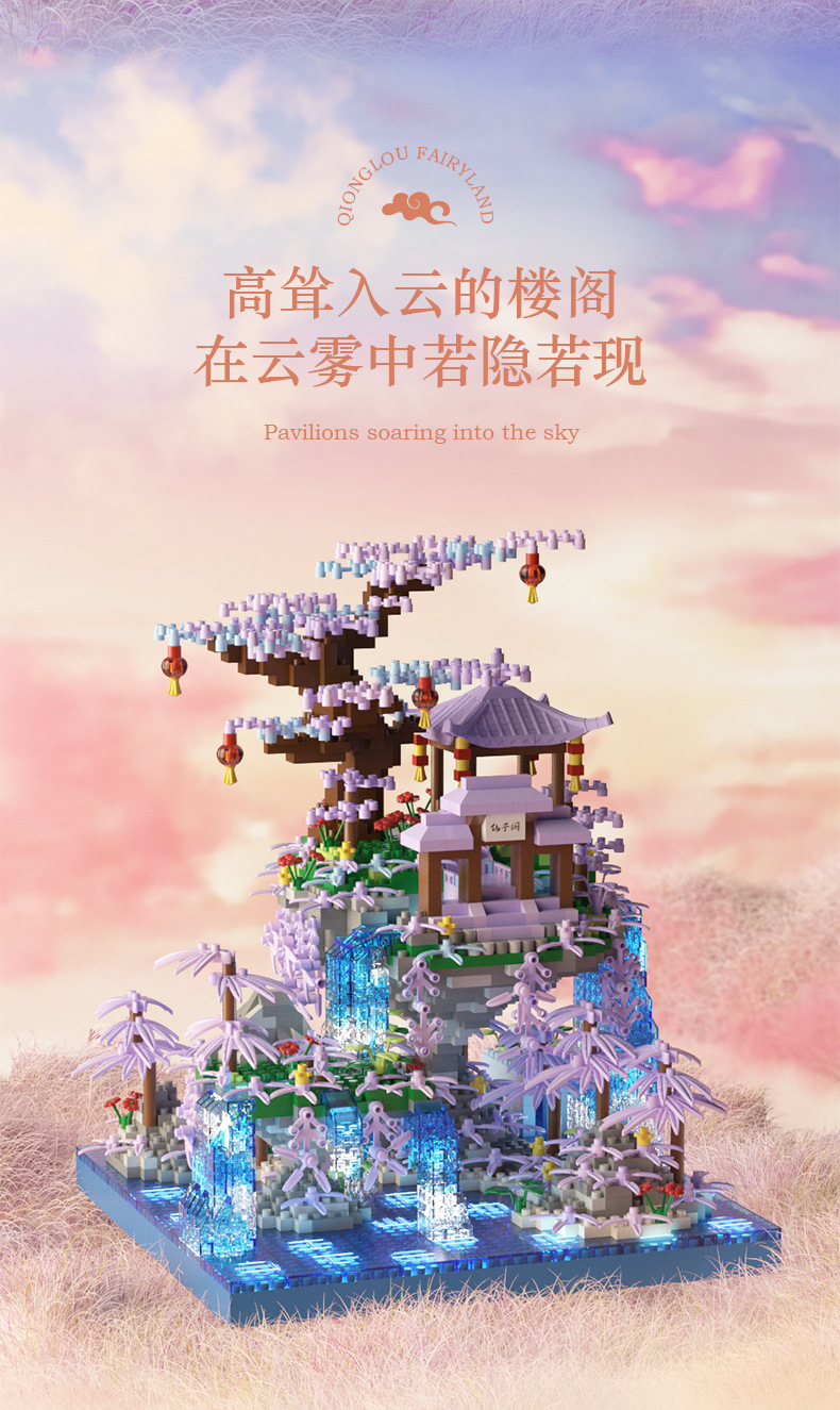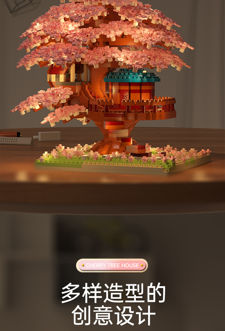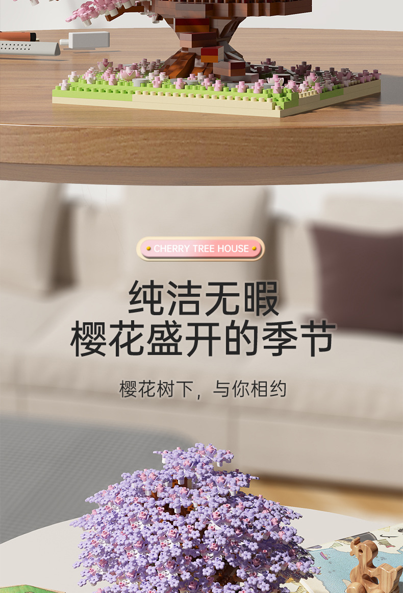 Кросс-браузерный домик сакуры совместим с домом персикового цветка высокое здание блоков сборки модель микро-частиц образовательная игрушка оптом