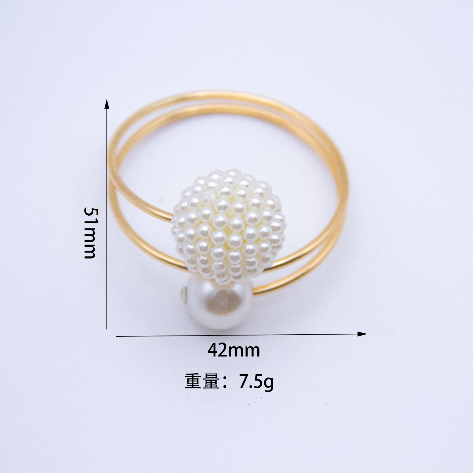 商品尺寸;双珍珠款外圈41mm+内圈39mm+高45mm+重量7.1g