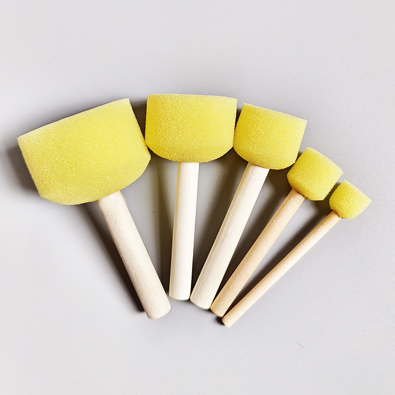 Губка для рисования, кисть для детей, деревянная ручка, круглая