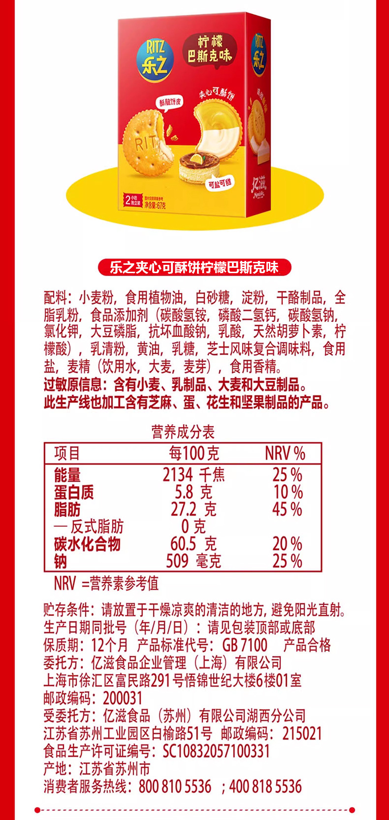 Песочное печенье Lezhi Хрустящее 67г Лимон Баскский Соленый яичный желток Сыр Вкусные закуски для детей