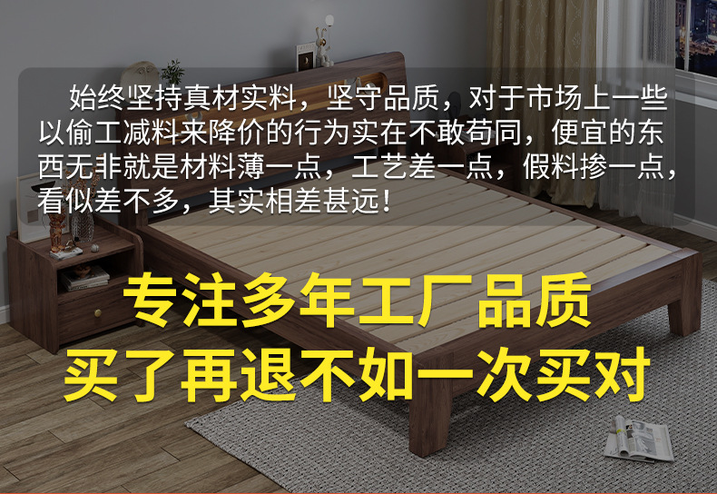 Деревянная кровать, современная простая, для главной спальни 1.5 м, двуспальная 1.8 м, экономичная, односпальная 1.2 м