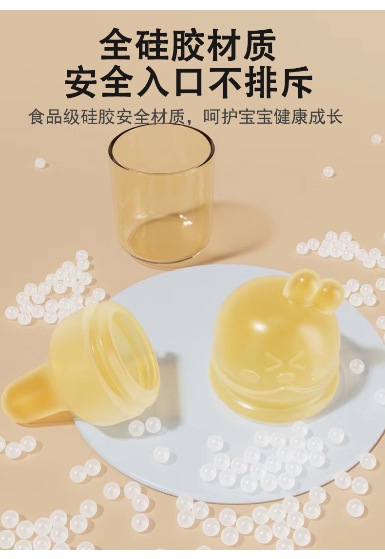 产品由食用级PP材料制成,不含双酚A,不含任何有害健康的物质。务必使客户满意、用户放心。目前主要生产奶瓶、奶瓶配件、奶嘴、咬咬乐、奶粉��、硅胶碗、勺等母婴用品。