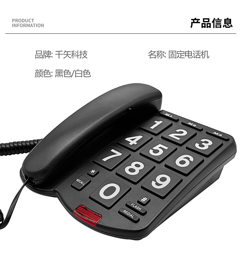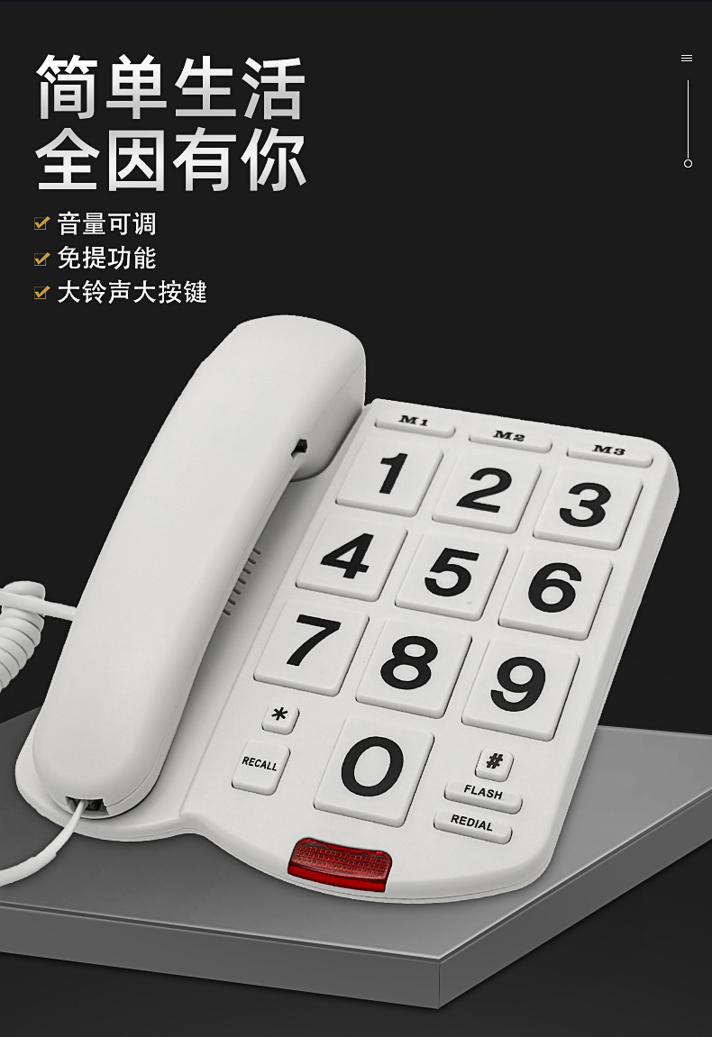 Проводной телефон для пожилых, стационарный, с большими кнопками и громким звуком