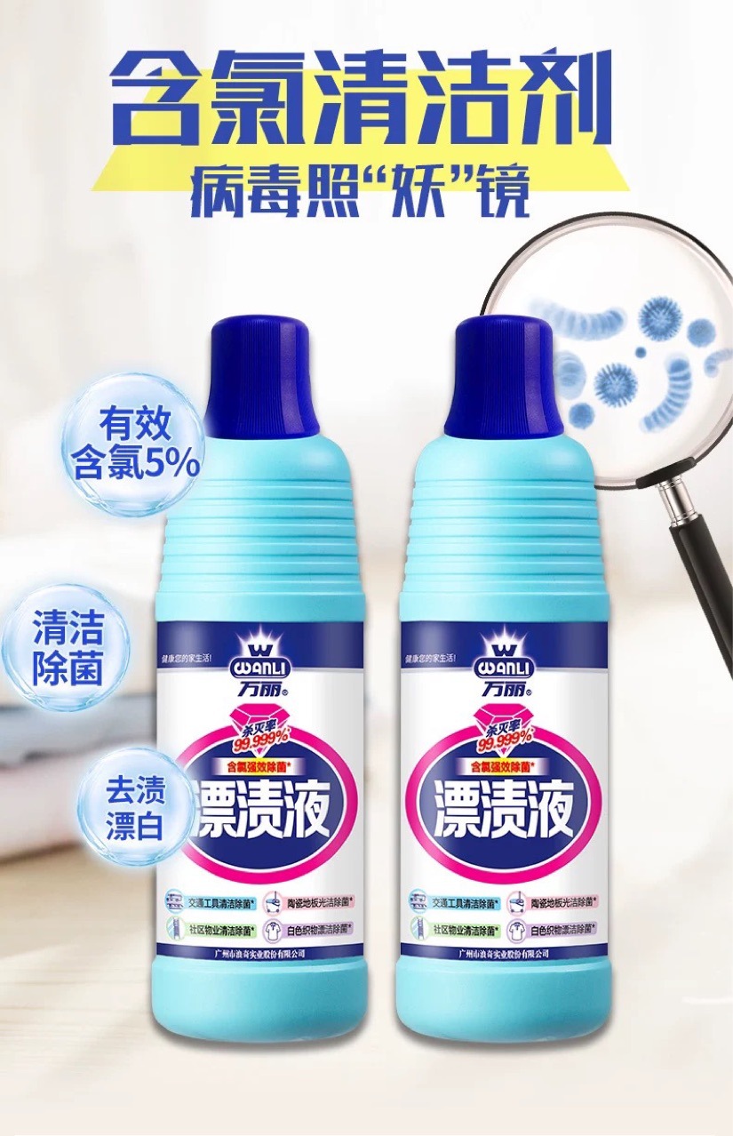 Жидкость для отбеливания Langqi Wanli, отбеливающий агент для одежды, дезинфекция, стерилизация, удаление запаха и плесени 600 г/бут.