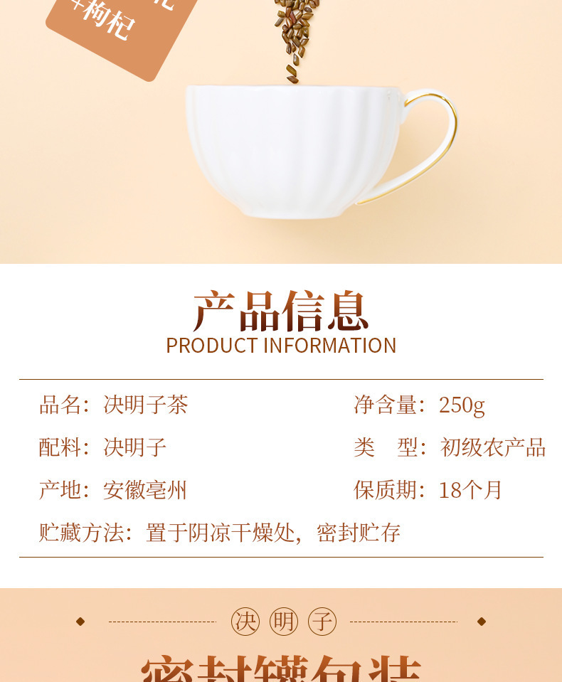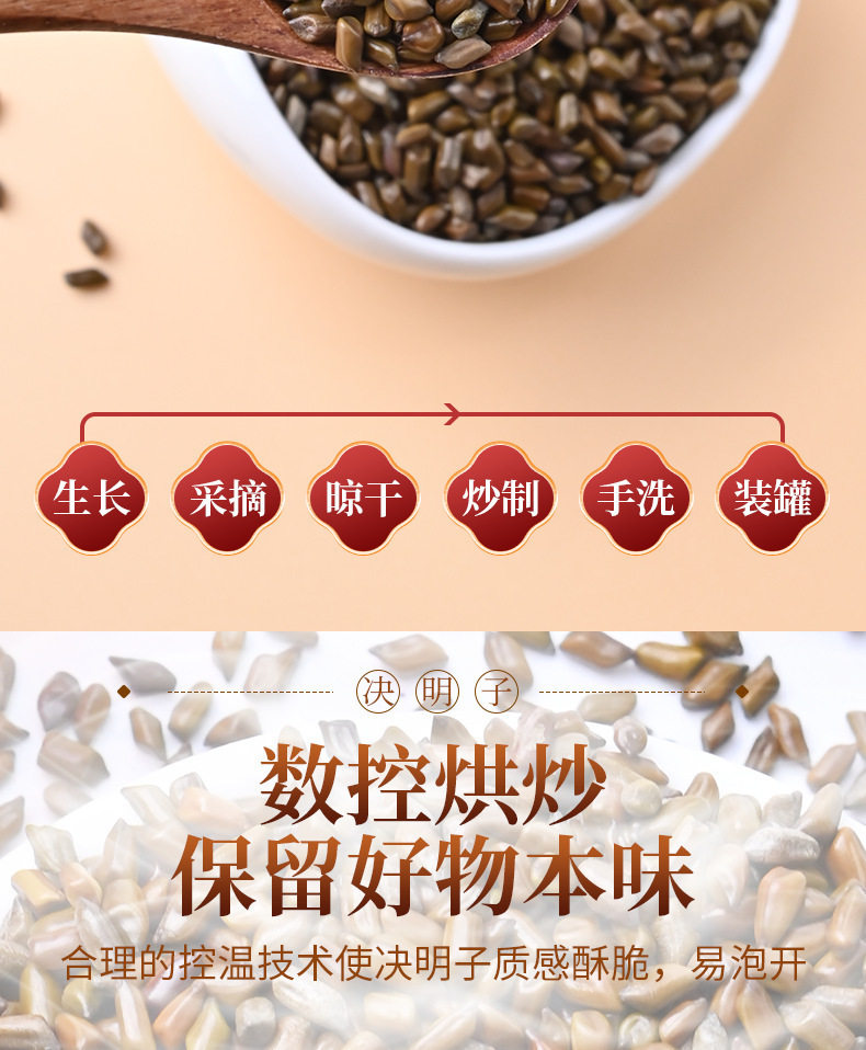 Чай из зеленых семян кассии Beijing Tongrentang, жареные семена кассии, 250г, банка с годжи и хризантемой, оптовая продажа