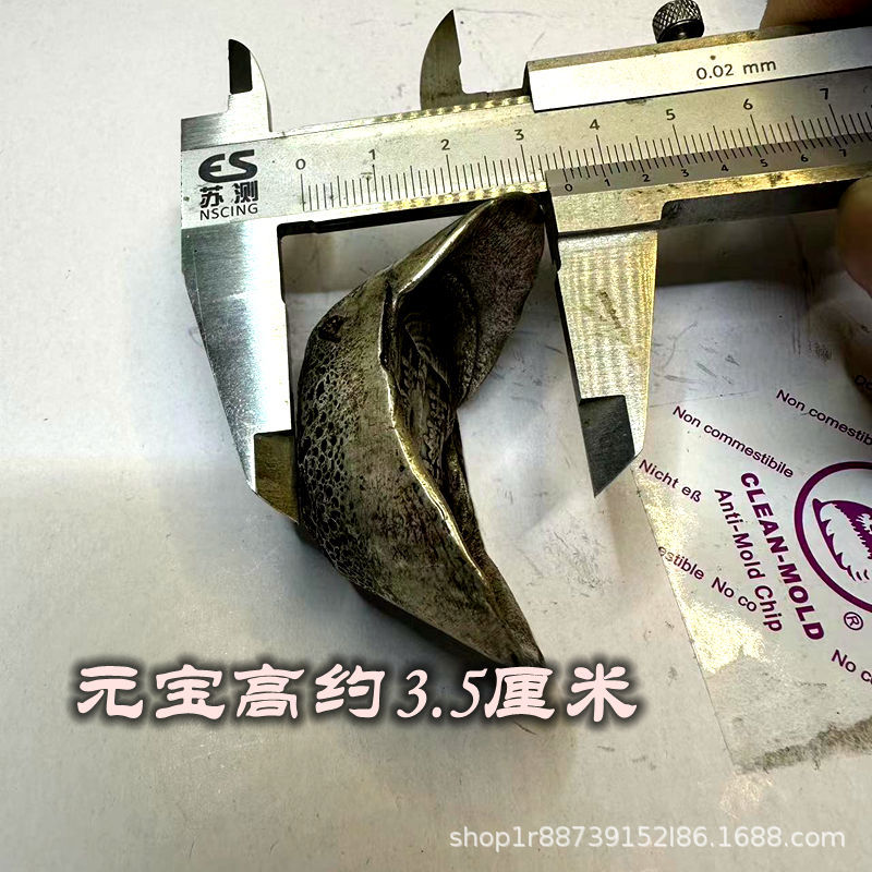规格 元宝长约6厘米 宽约3.5厘米 高约3.5厘米 重约110-120克