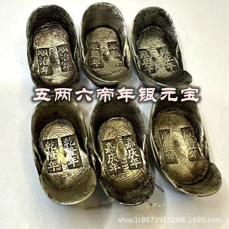 Антикварный серебряный слиток серебряный слиток династии Цин Шуньчжи Канси Юнчжэн Цяньлун Цзяцин Сяньфэн год 0.25кг соты слиток шесть императорских годов