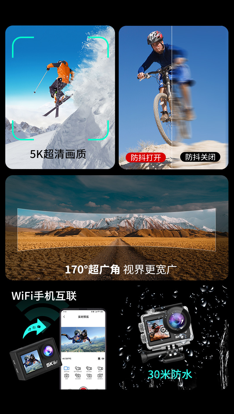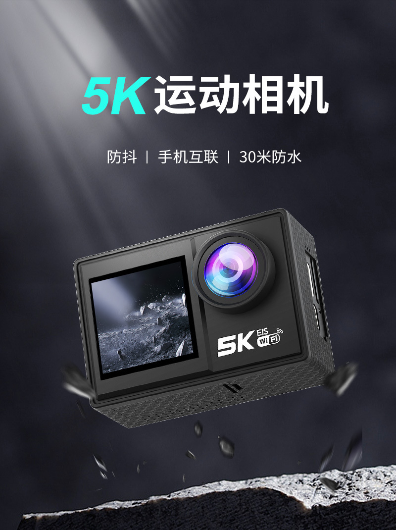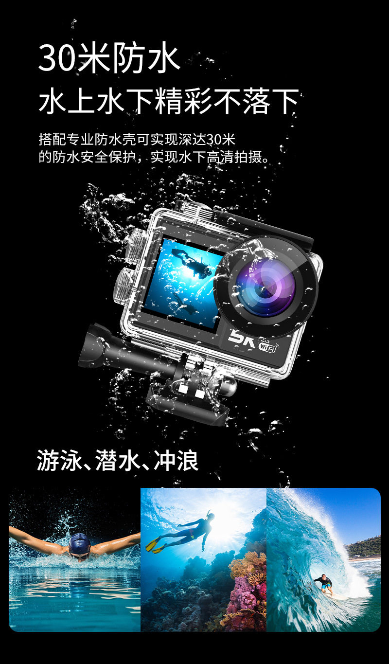 5K экшн-камера с антишоком, беспроводной Wi-Fi, для мотоциклетного шлема, велозаписи, водонепроницаемая, для рыбалки