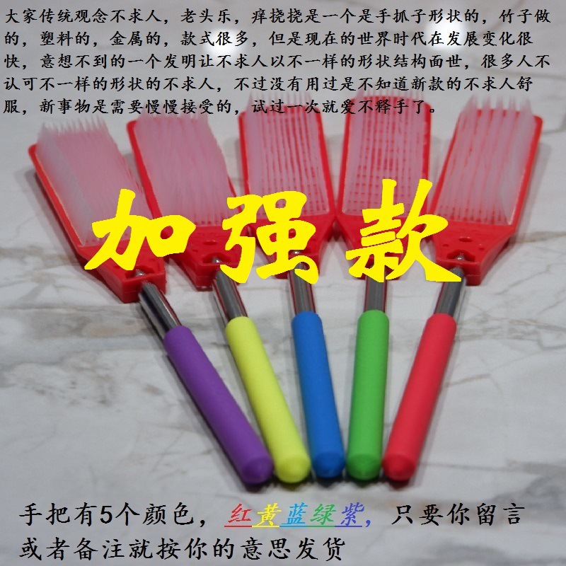 又出新品了(冬天款不求人)是老年人背部挠痒痒专用,这个刷子专门为老年人背部瘙痒设计的,材料的软硬程度正好挠痒痒,家里有老人,背部瘙痒是他们的难言之隐,做为晚辈为家里的长辈的长期的困扰去解忧,拍一个新款不求人--老头乐,花个小钱少抽几支烟就能帮助家里的老人解决背部瘙痒难题,当然年轻人背部瘙痒也可以用,不锈钢收缩杆可以25厘米到47厘米自由收缩,出差方便收纳携带,办公室放一个,卧室放一个,驾驶室放一个,随时随地可以解决背部瘙痒之烦恼,8厘米*3.5厘米宽度的毛刷比一般的不求人工作面积大无数倍,用了以后都说爽