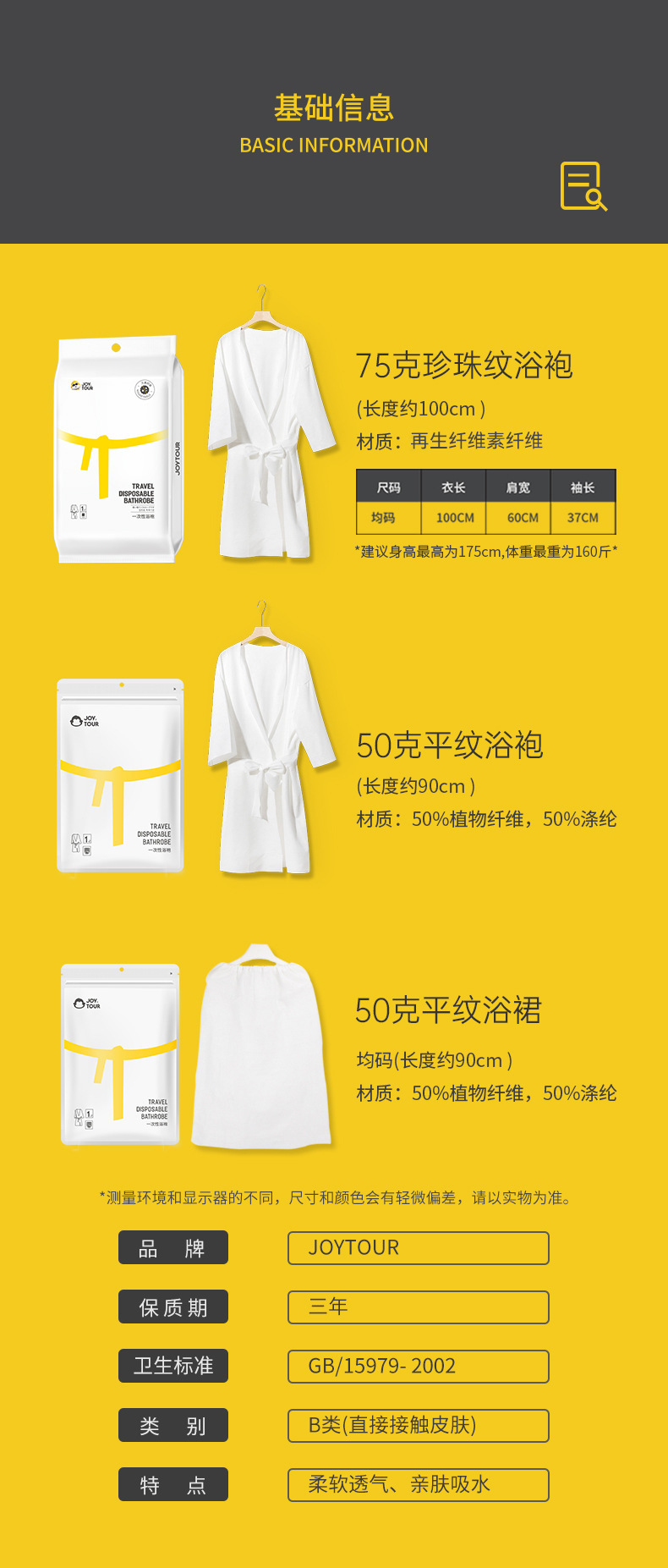 ![]() | Regular | Disposable bathrobe plain white length 90cm weight 50 | ¥6.8 / ≈ 82 ₽ | 2385 | 5783696411522 | |