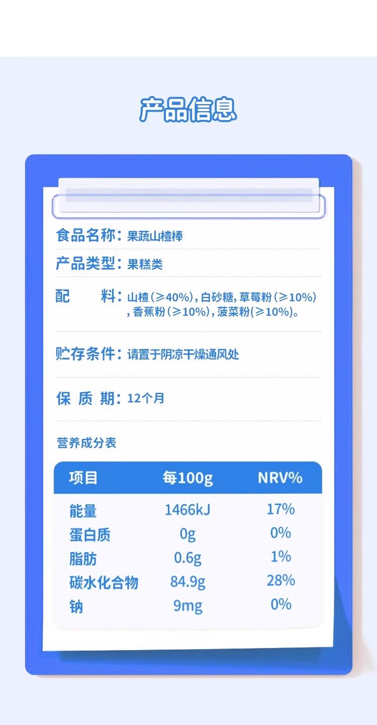 📦 | (july 25) fruit and vegetable hawthorn sticks 64g (8g*8 sticks) | 1шт: ¥7.80, 6шт: ¥7.50, 12шт: ¥7.20 | 459 | 6098912599584 |
