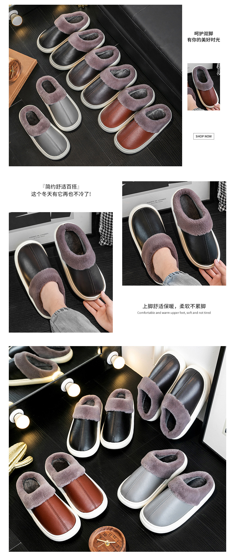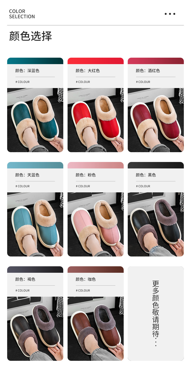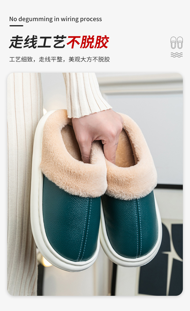 Кастомизированные водонепроницаемые тапочки из кожи и хлопка для мужчин и женщин, теплые фланелевые тапочки с толстой подошвой для пар, противоскользящие