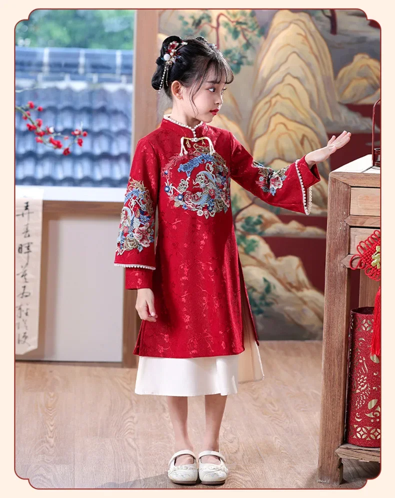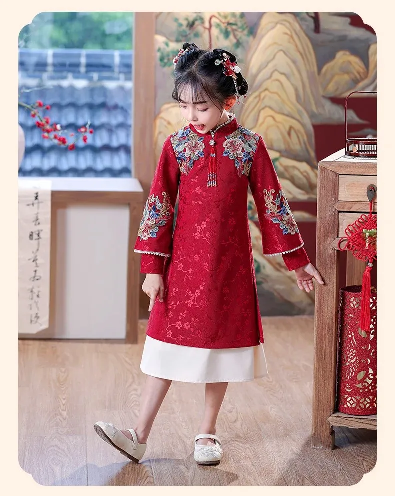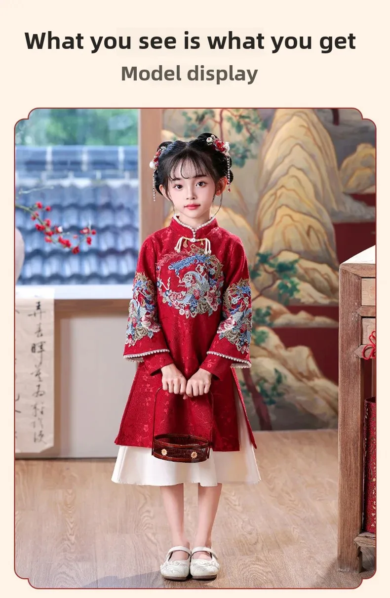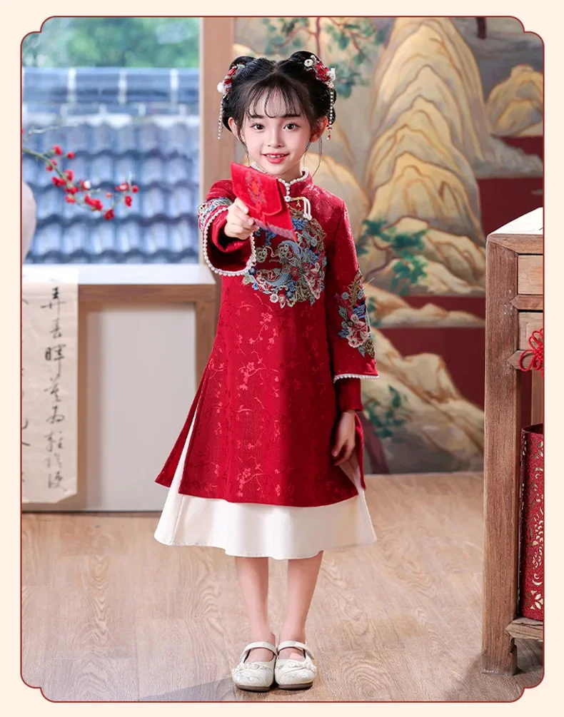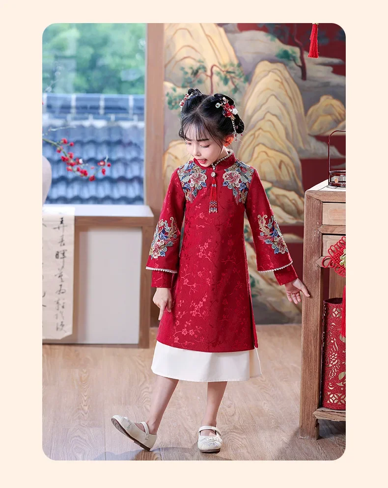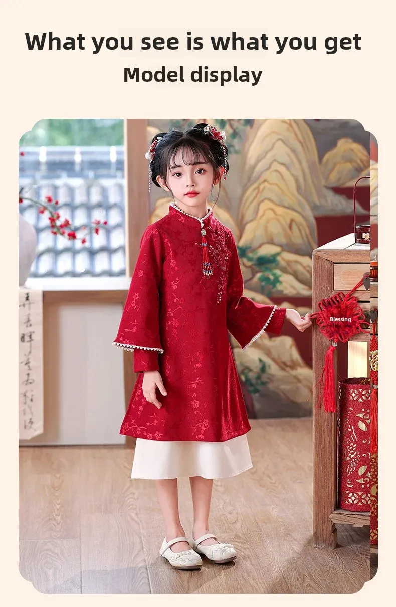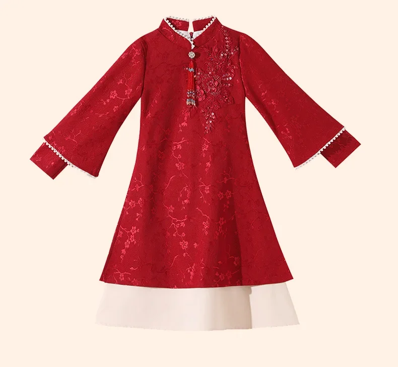 Платье для девочек на Новый год, осенне-зимний китайский стиль, улучшенное платье с длинным рукавом 2025