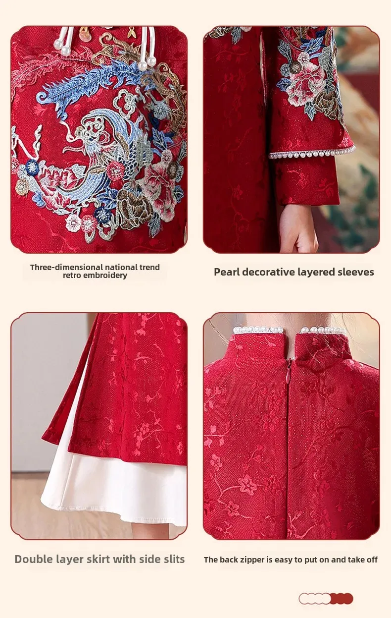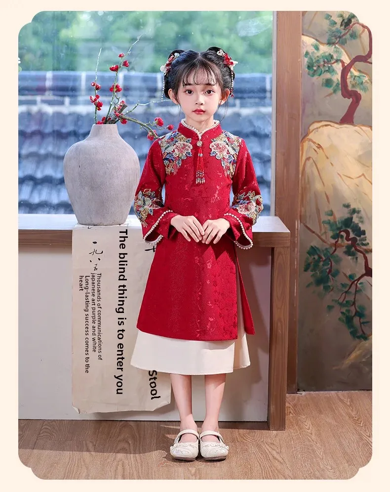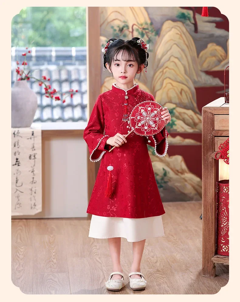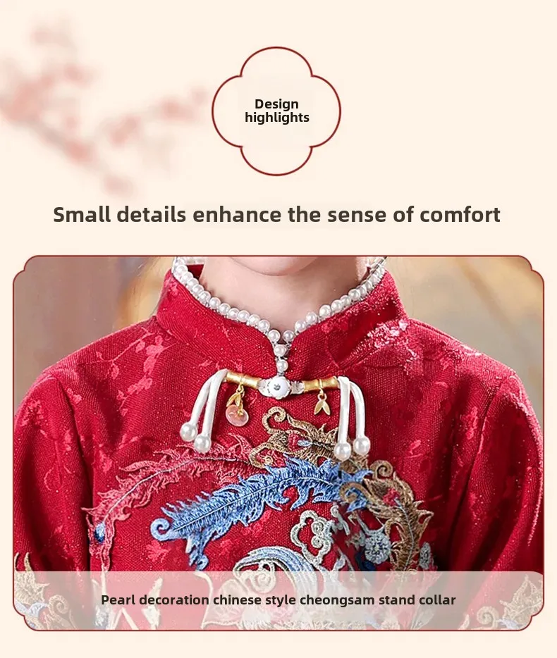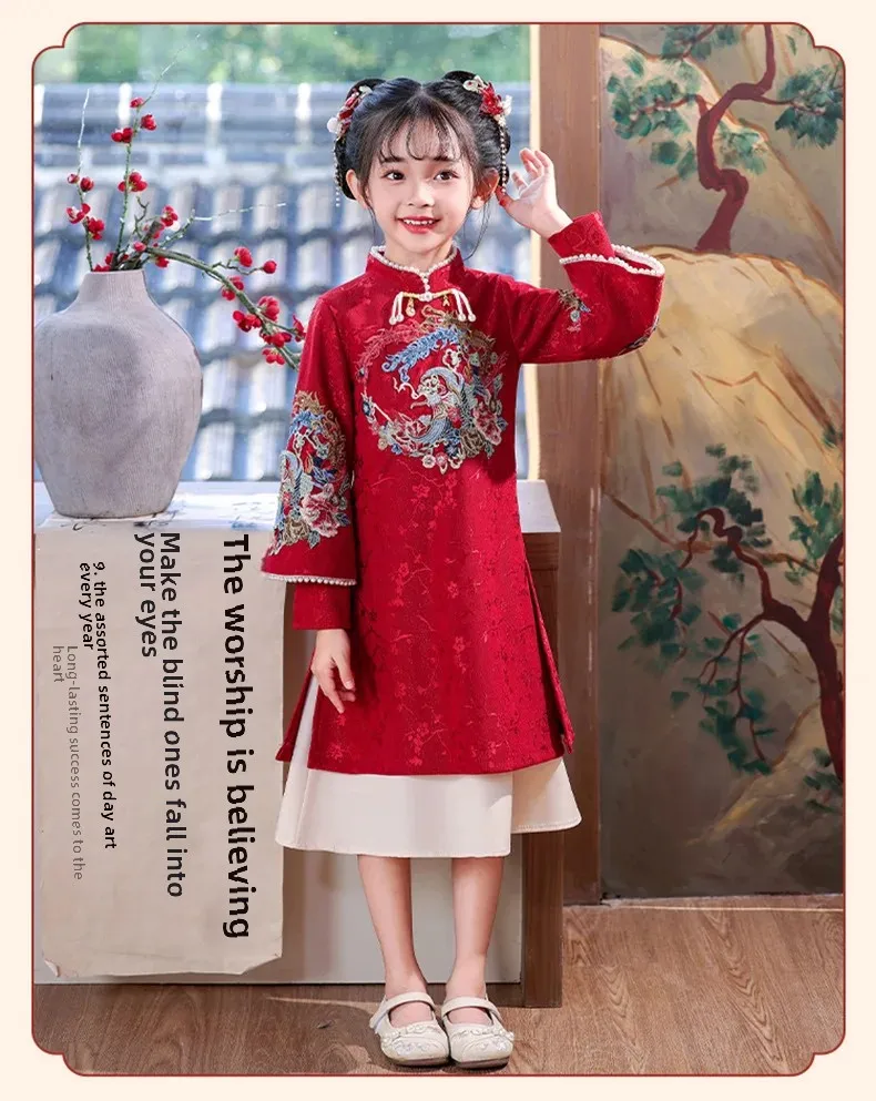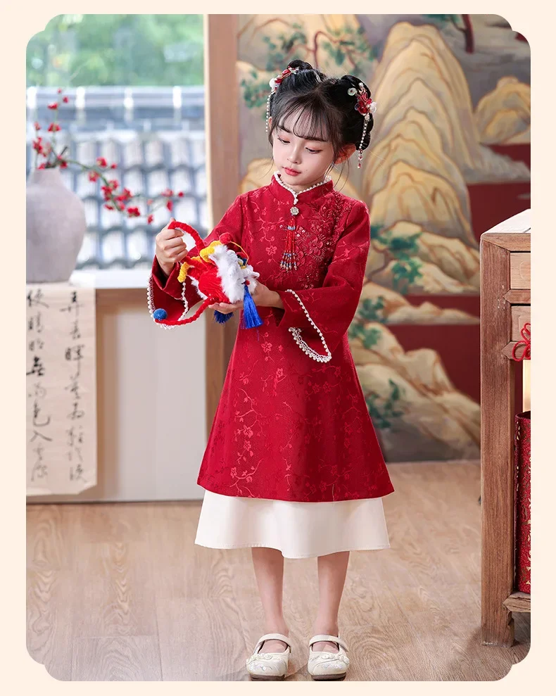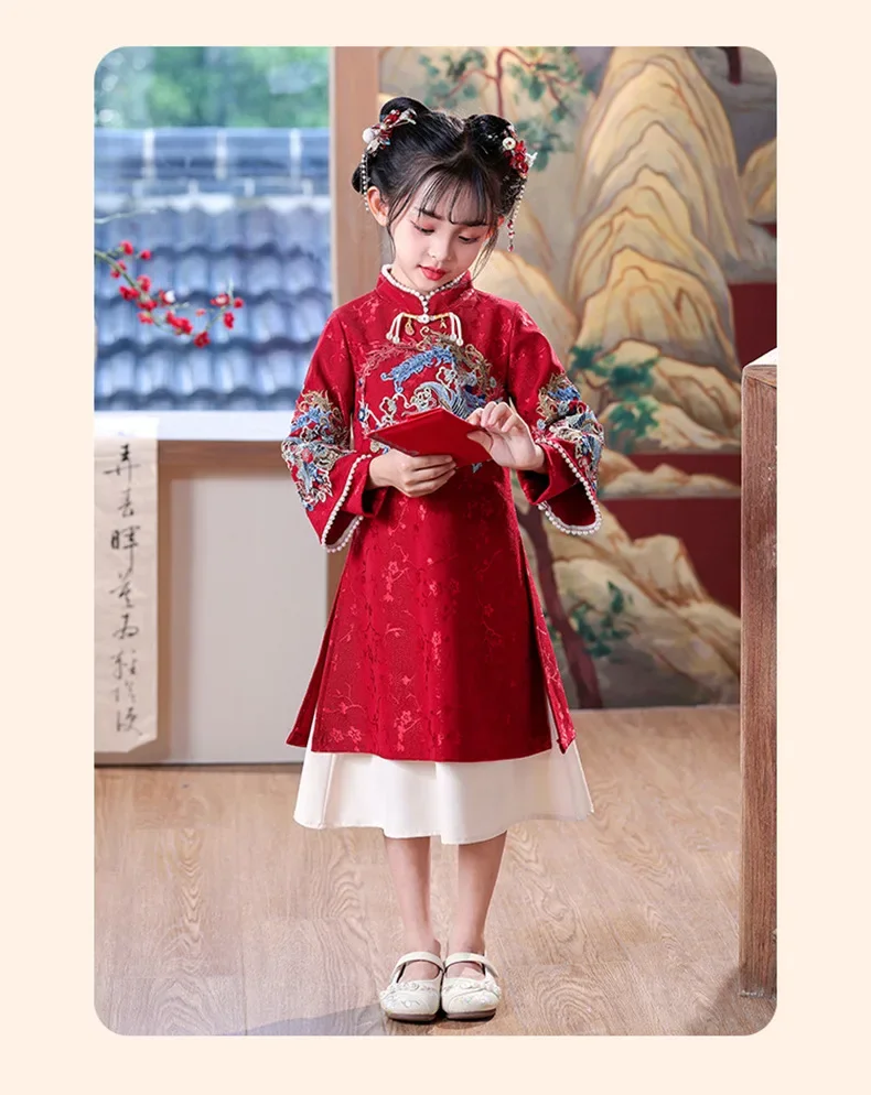 Платье для девочек на Новый год, осенне-зимний китайский стиль, улучшенное платье с длинным рукавом 2025