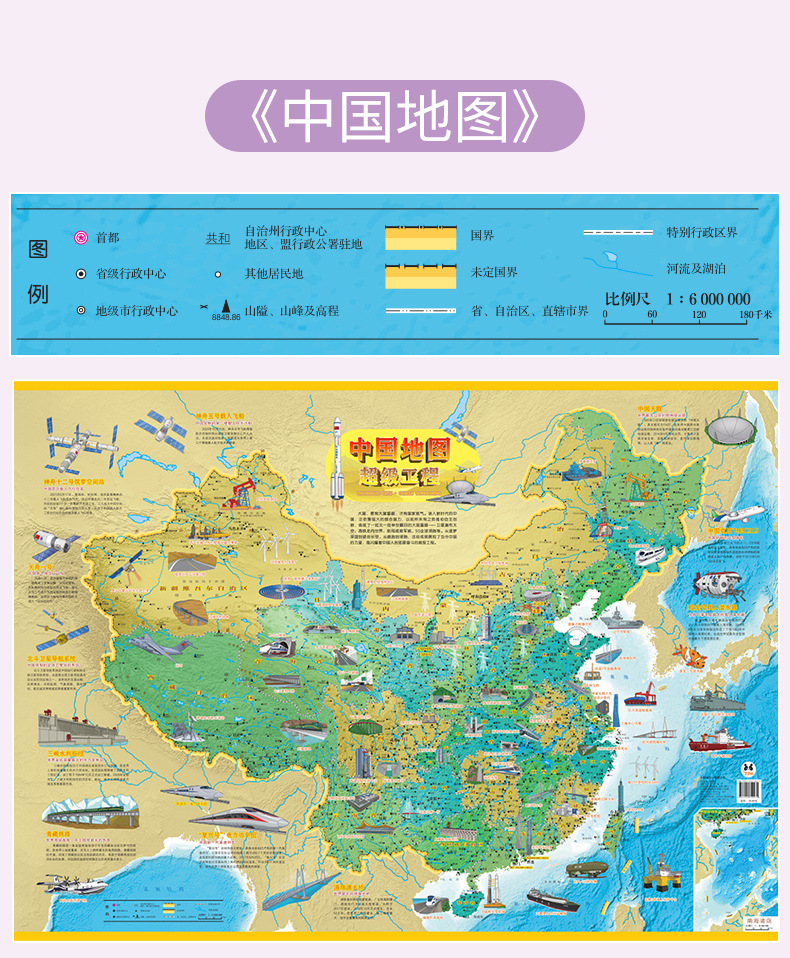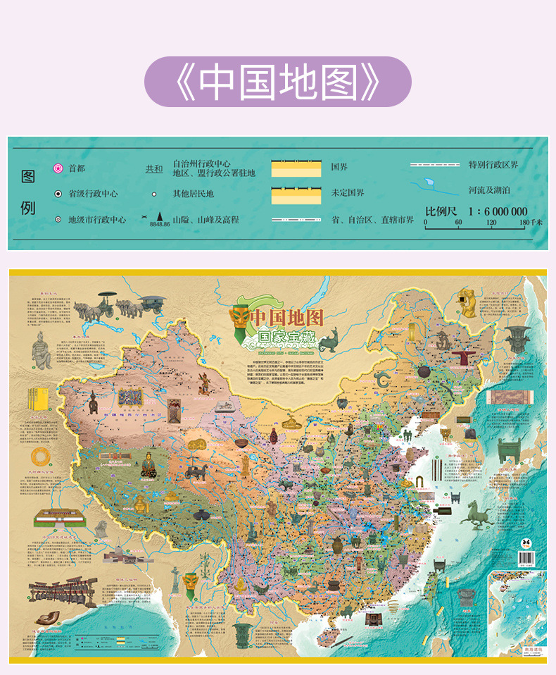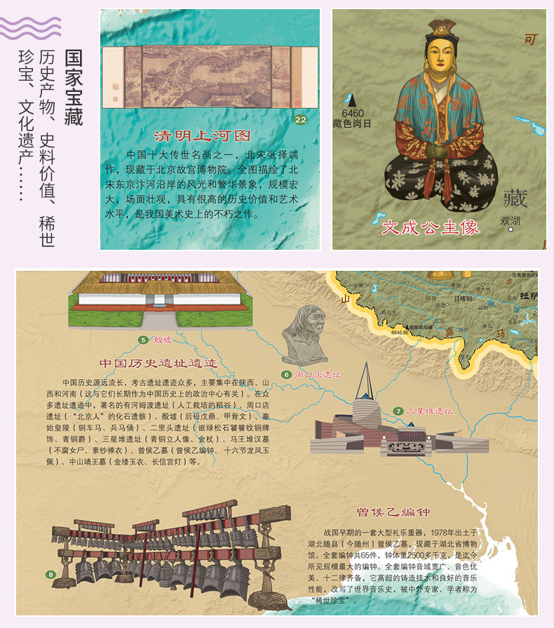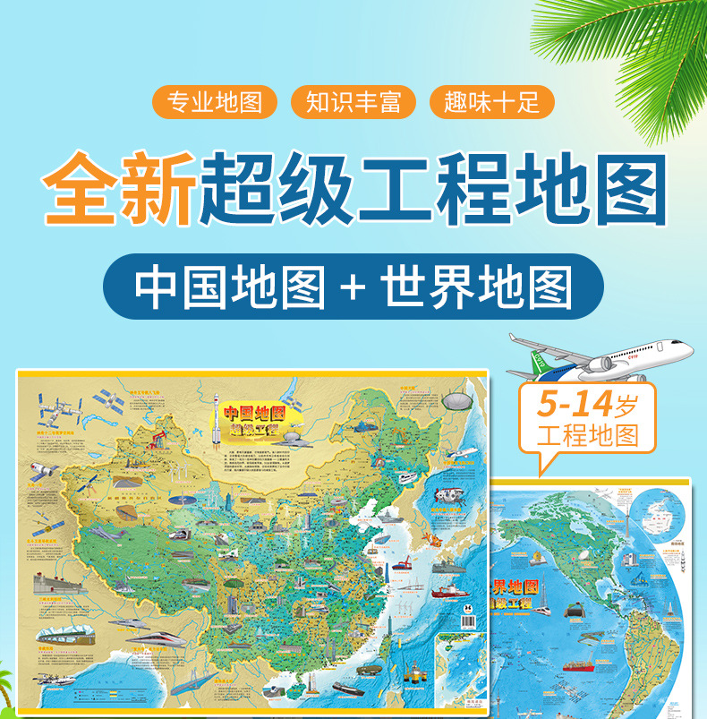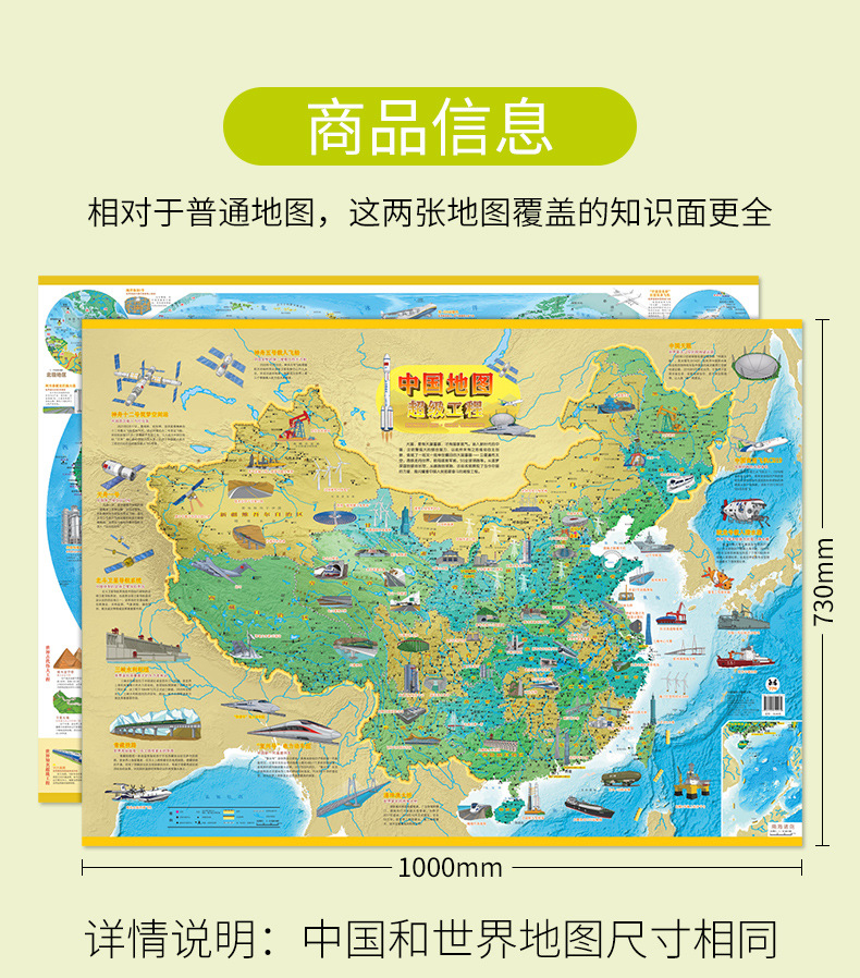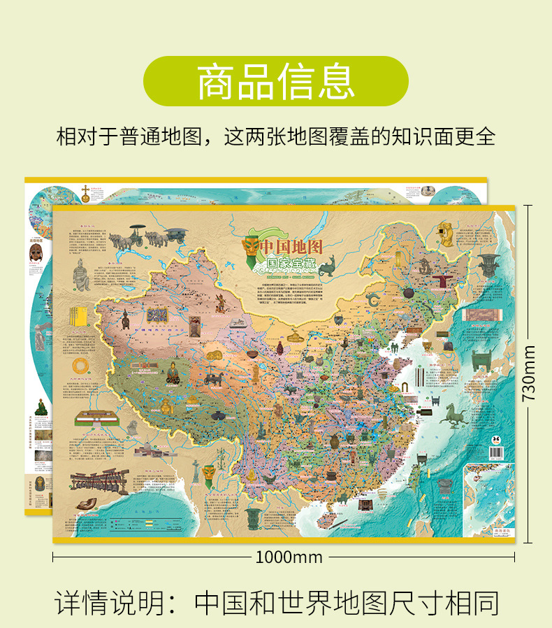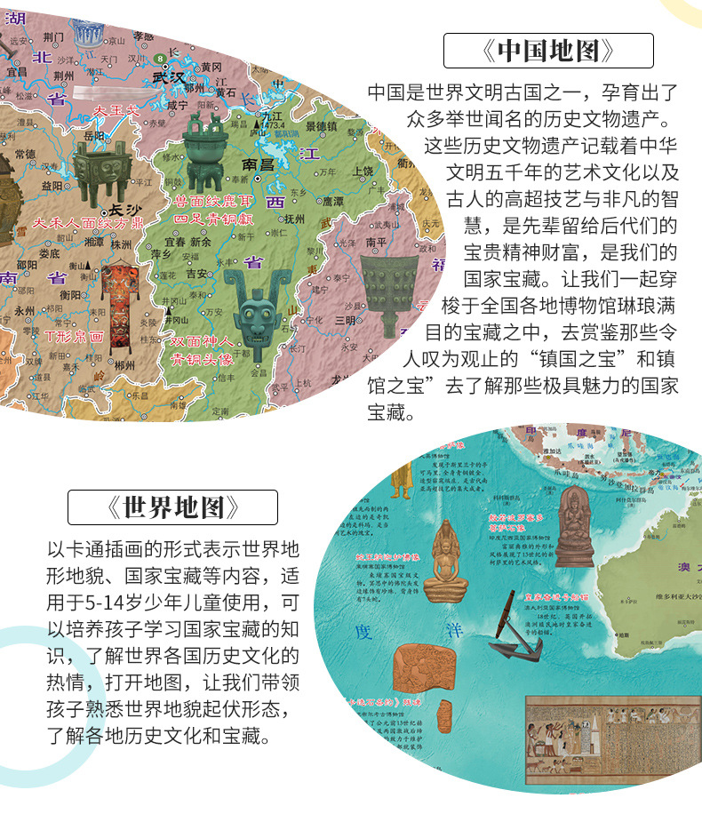 Карта мира Карта Китая Детская версия Карта для просвещения 3-12 лет Национальное сокровище Супер проект