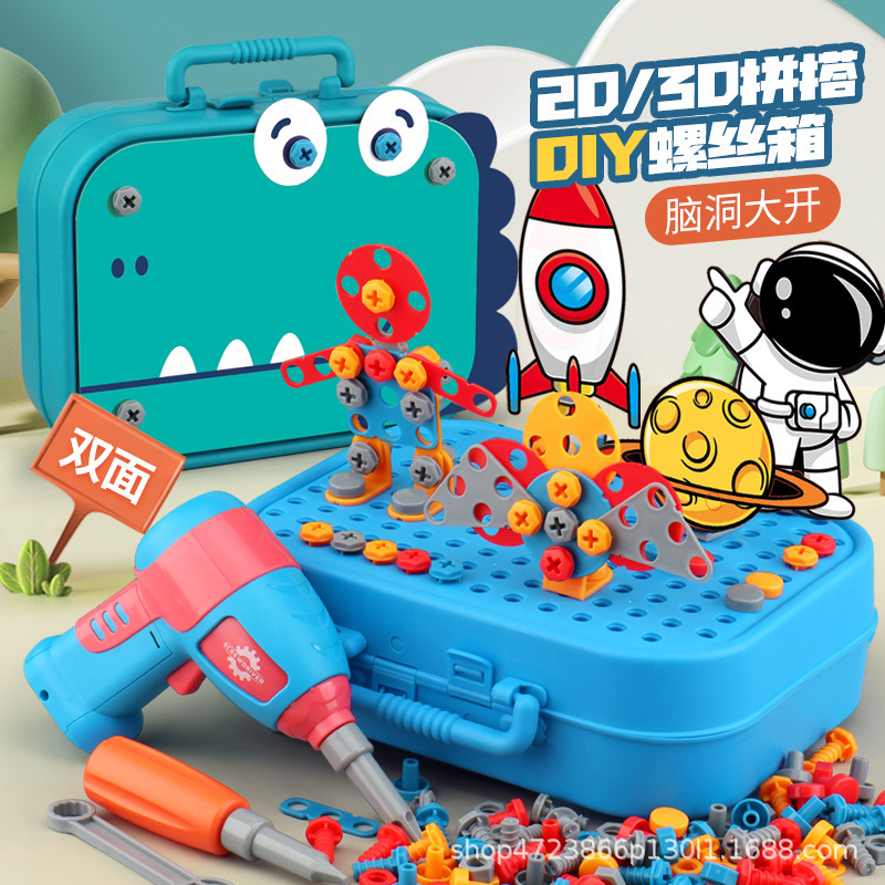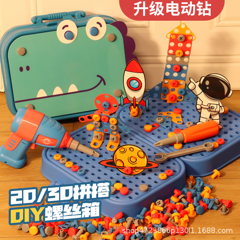 Детский электрический дрель-шуруповерт для сборки строительных блоков, разборки игрушек, набор инструментов, комбинация гаек, DIY пазл, модель сборки