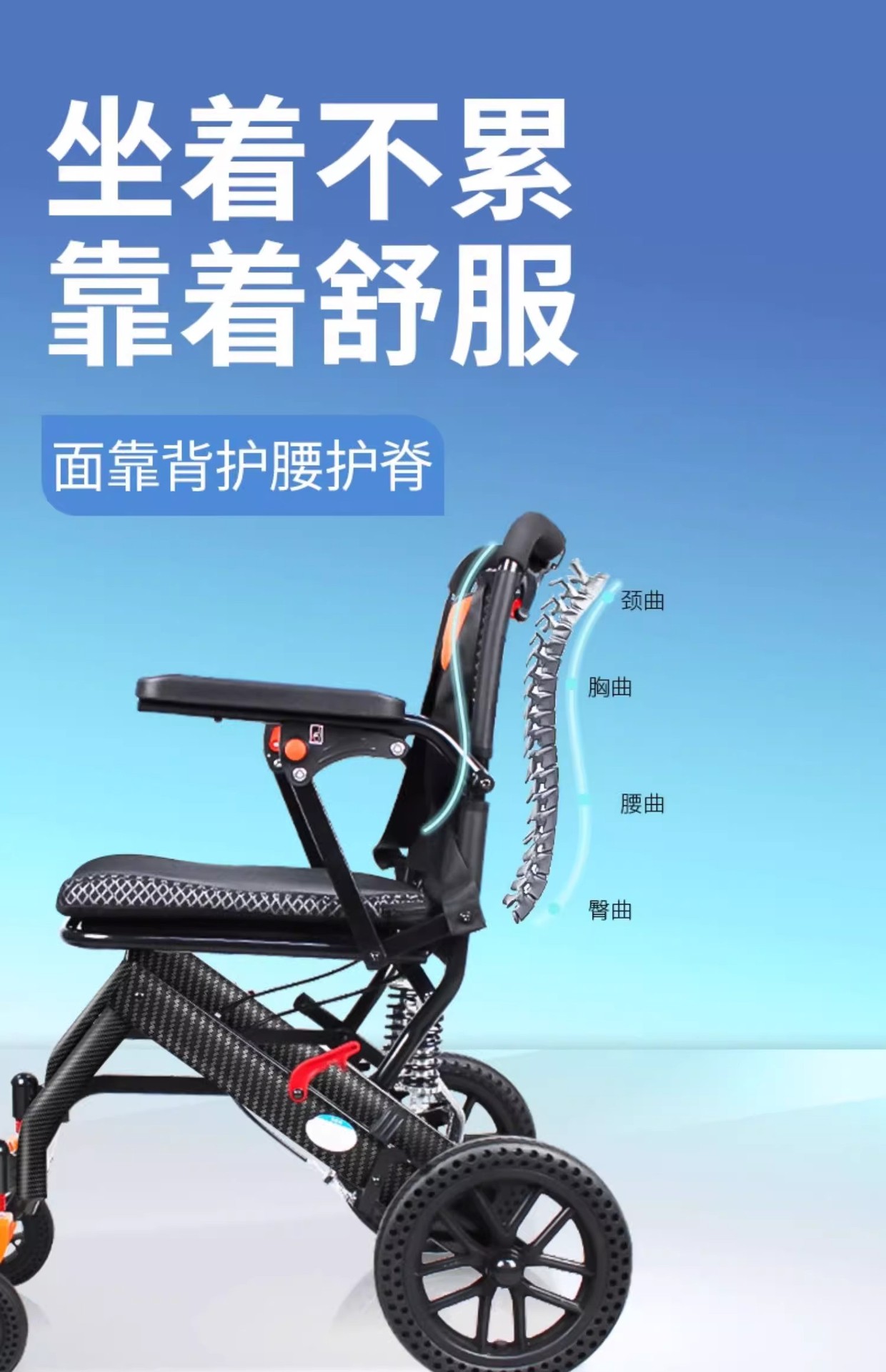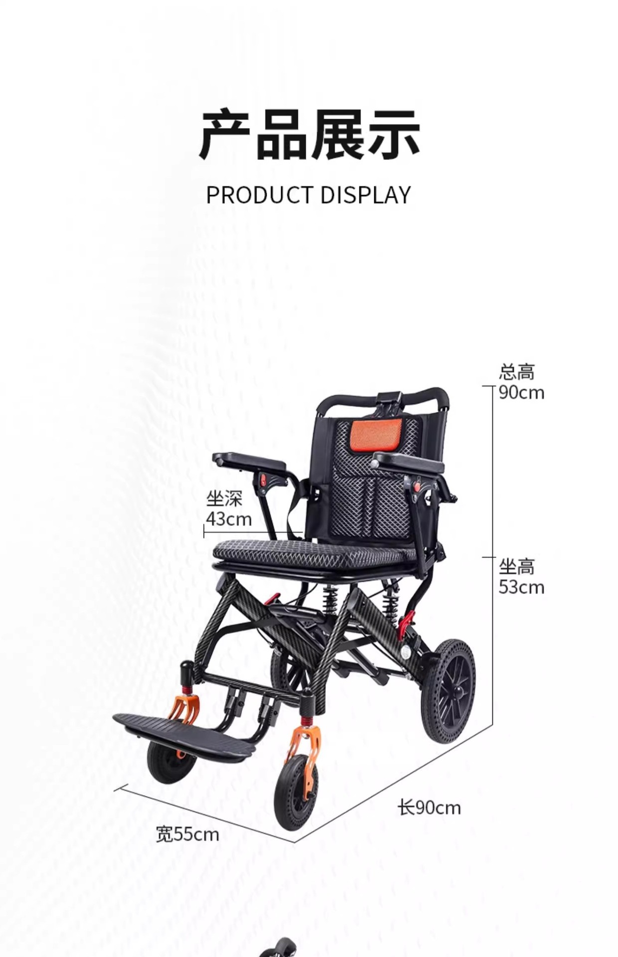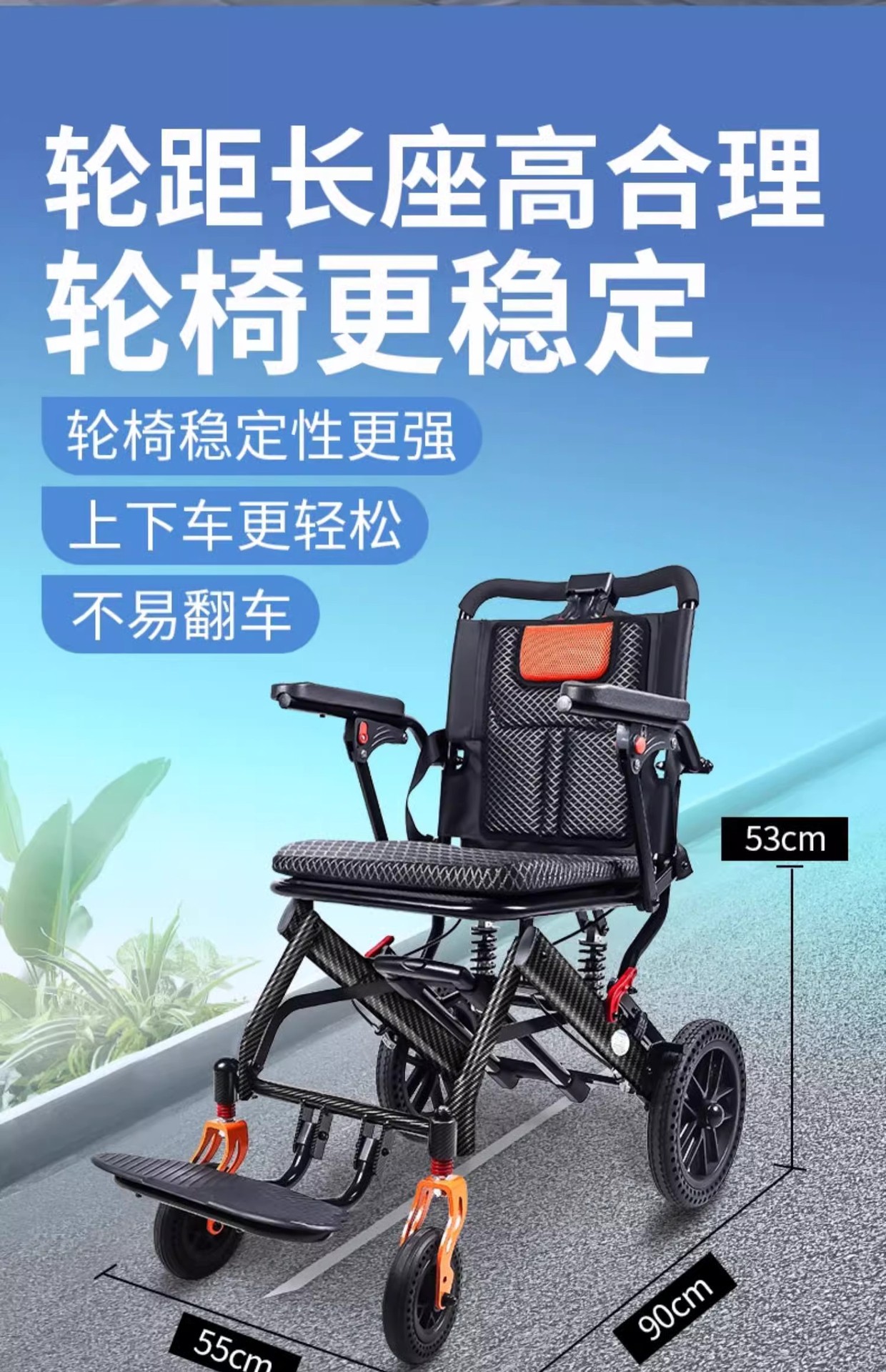 Складная инвалидная коляска с наклоном, легкая, маленькая, портативная, удобная для путешествий, для пожилых и молодых людей