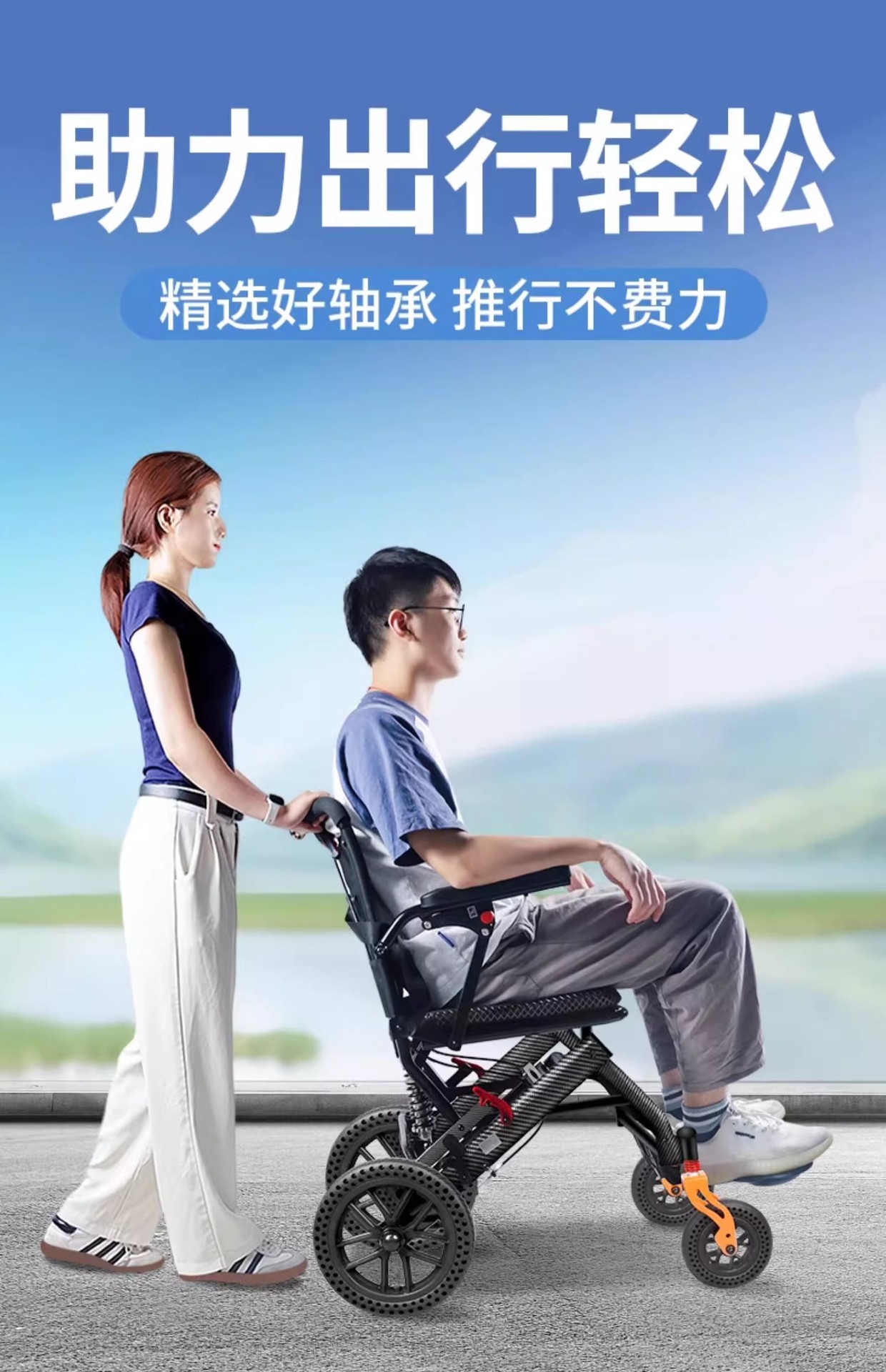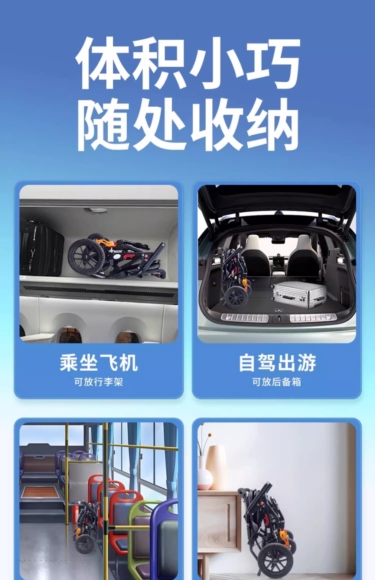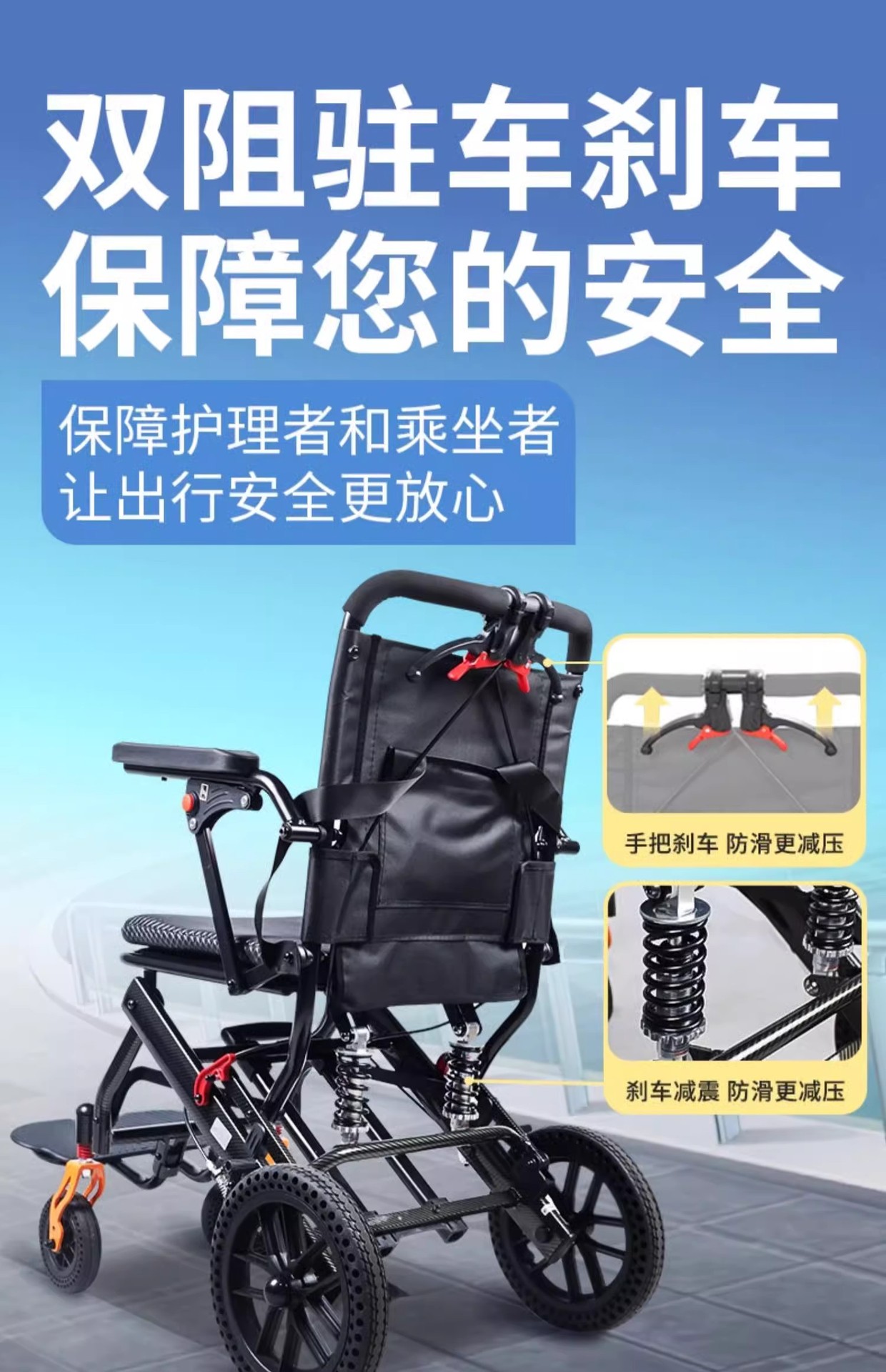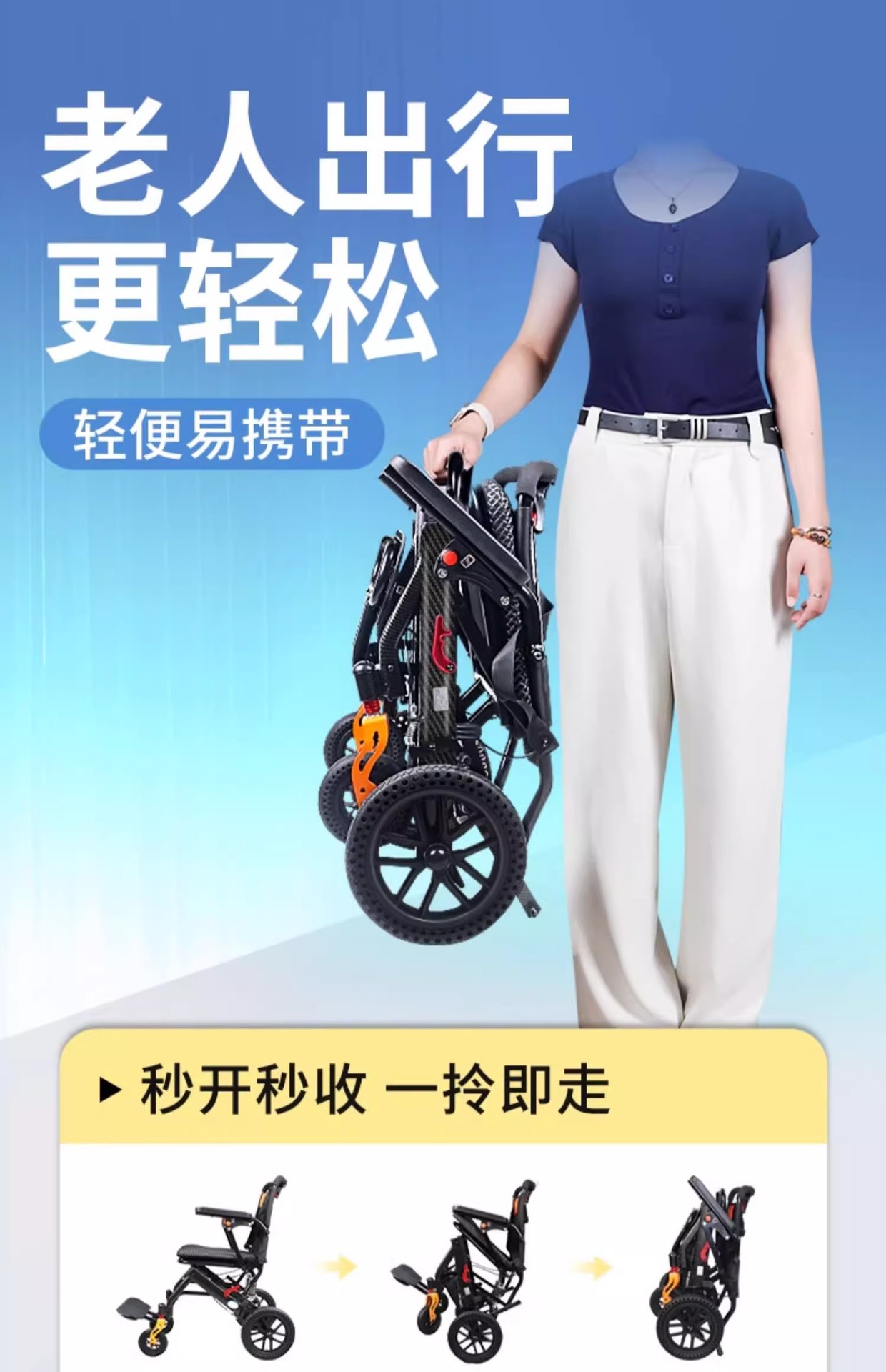 Складная инвалидная коляска с наклоном, легкая, маленькая, портативная, удобная для путешествий, для пожилых и молодых людей