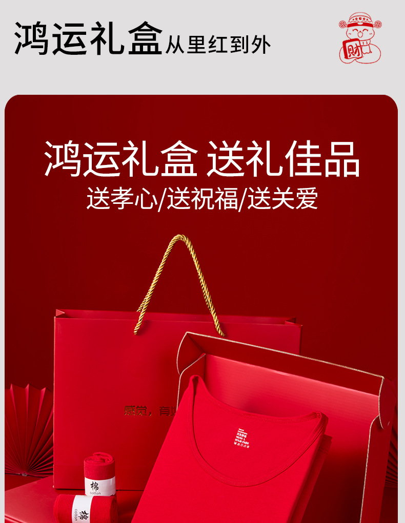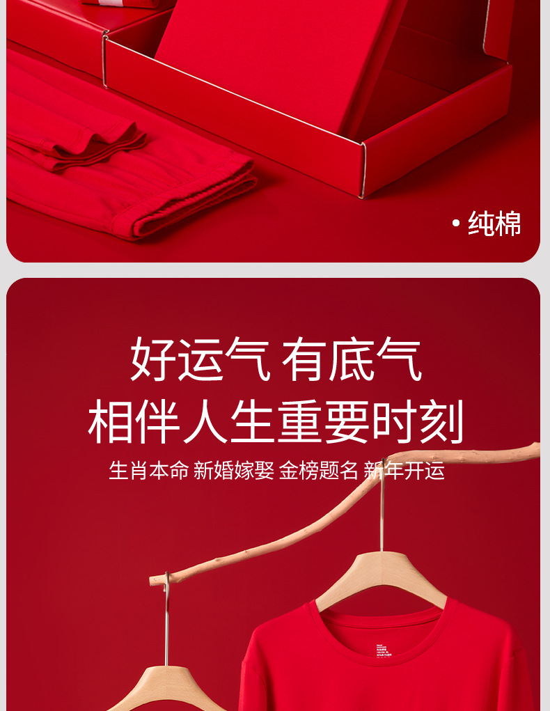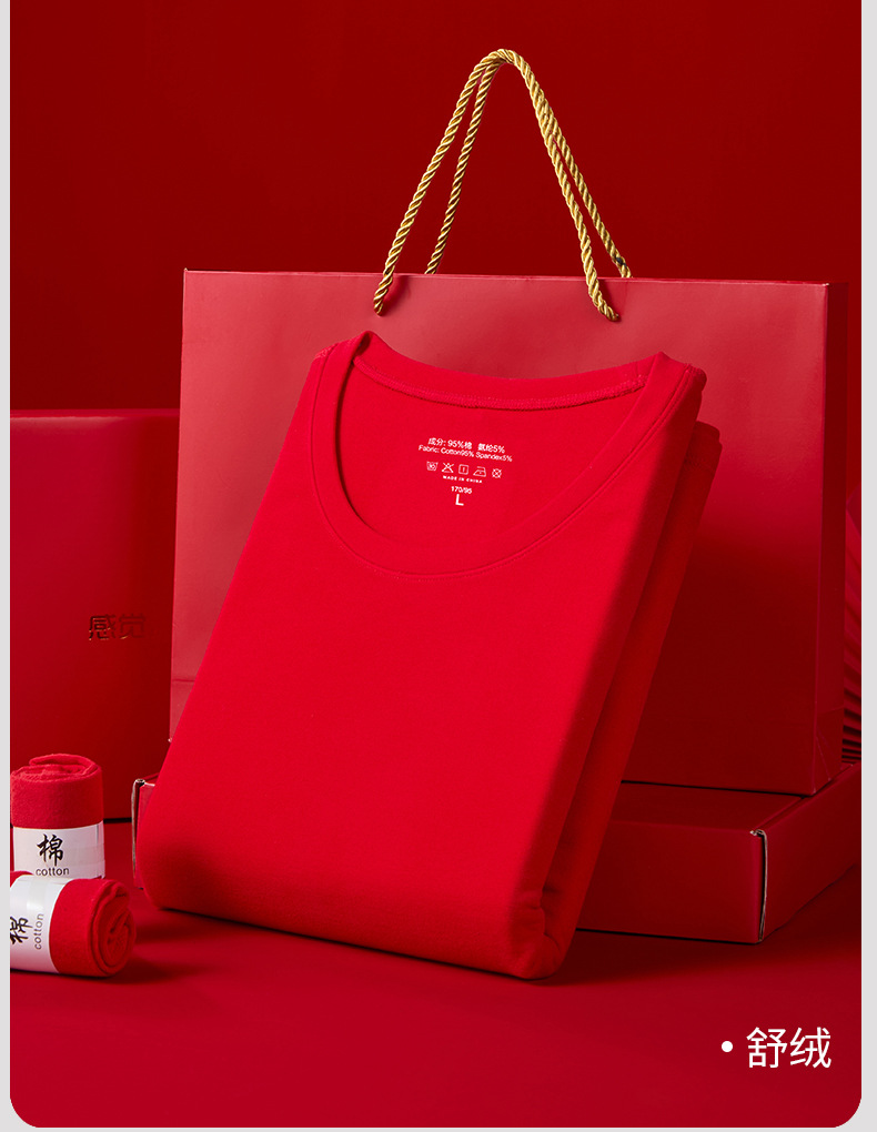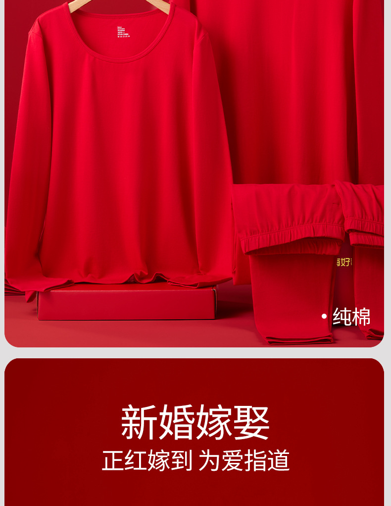 Термобелье Benmingnian Большой Красный Подарочный Набор Чистый Хлопок Пара Свадебная Осенняя Одежда и Брюки Теплый Подарочный Набор