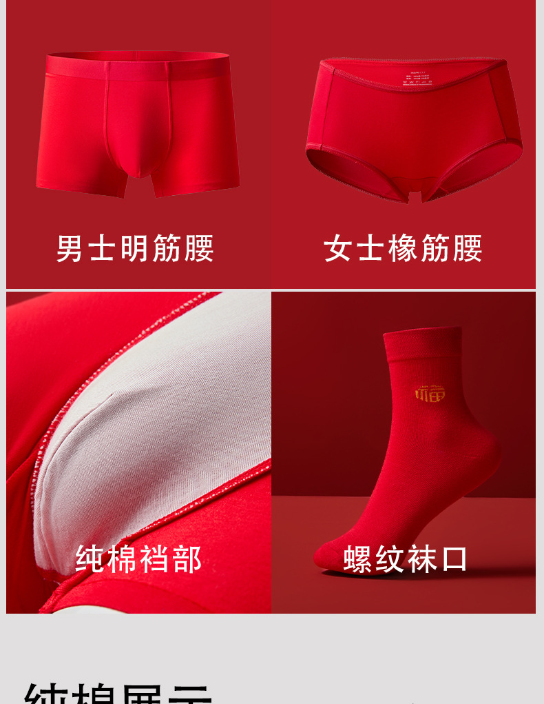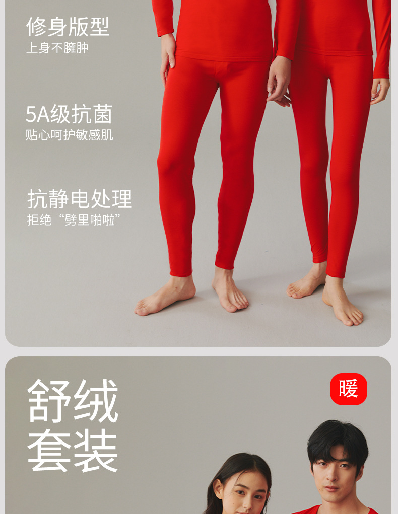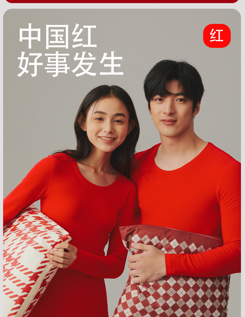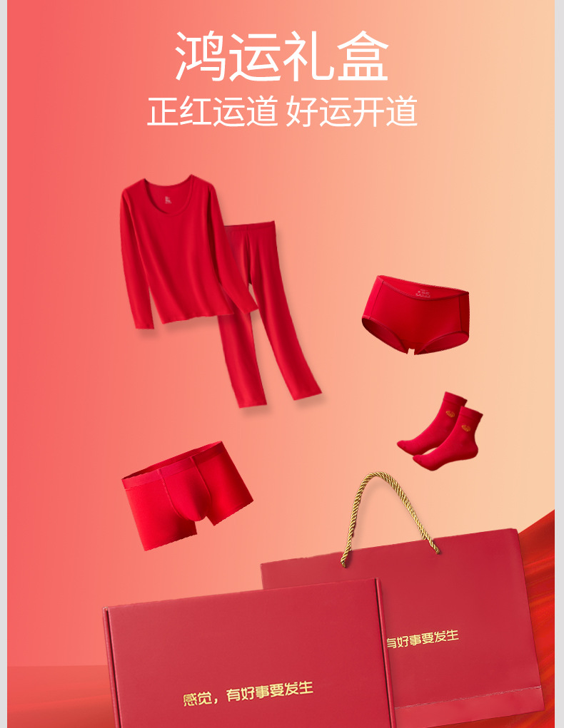Термобелье Benmingnian Большой Красный Подарочный Набор Чистый Хлопок Пара Свадебная Осенняя Одежда и Брюки Теплый Подарочный Набор