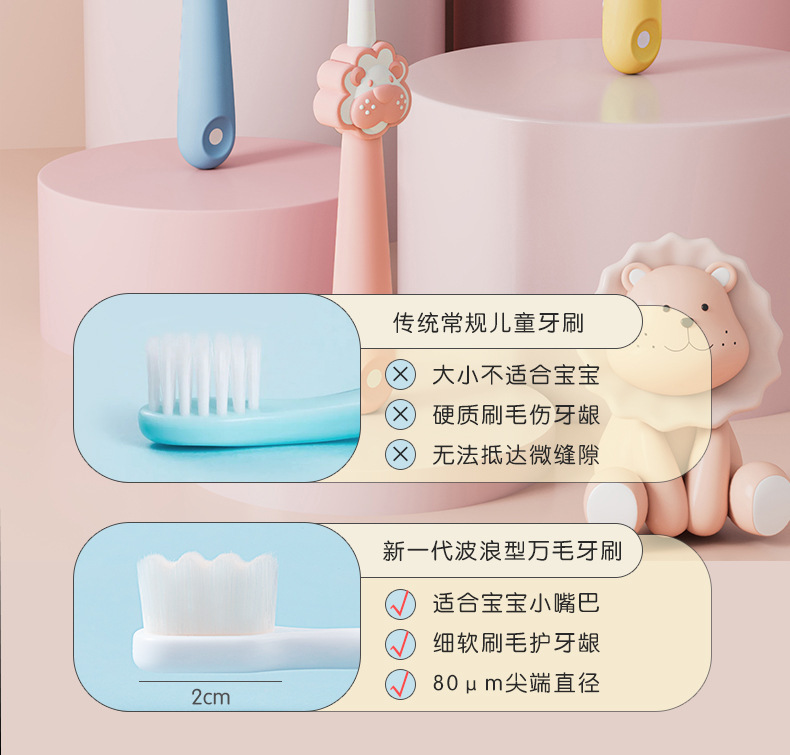 Детская зубная щетка с мультяшным львенком, упаковка отдельно, для детей 2-10 лет, мягкая щетина, оптовая продажа