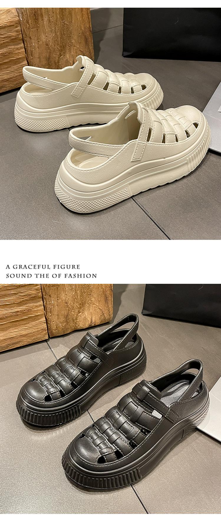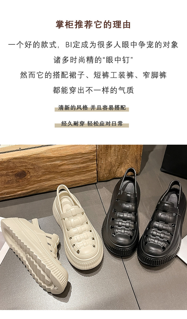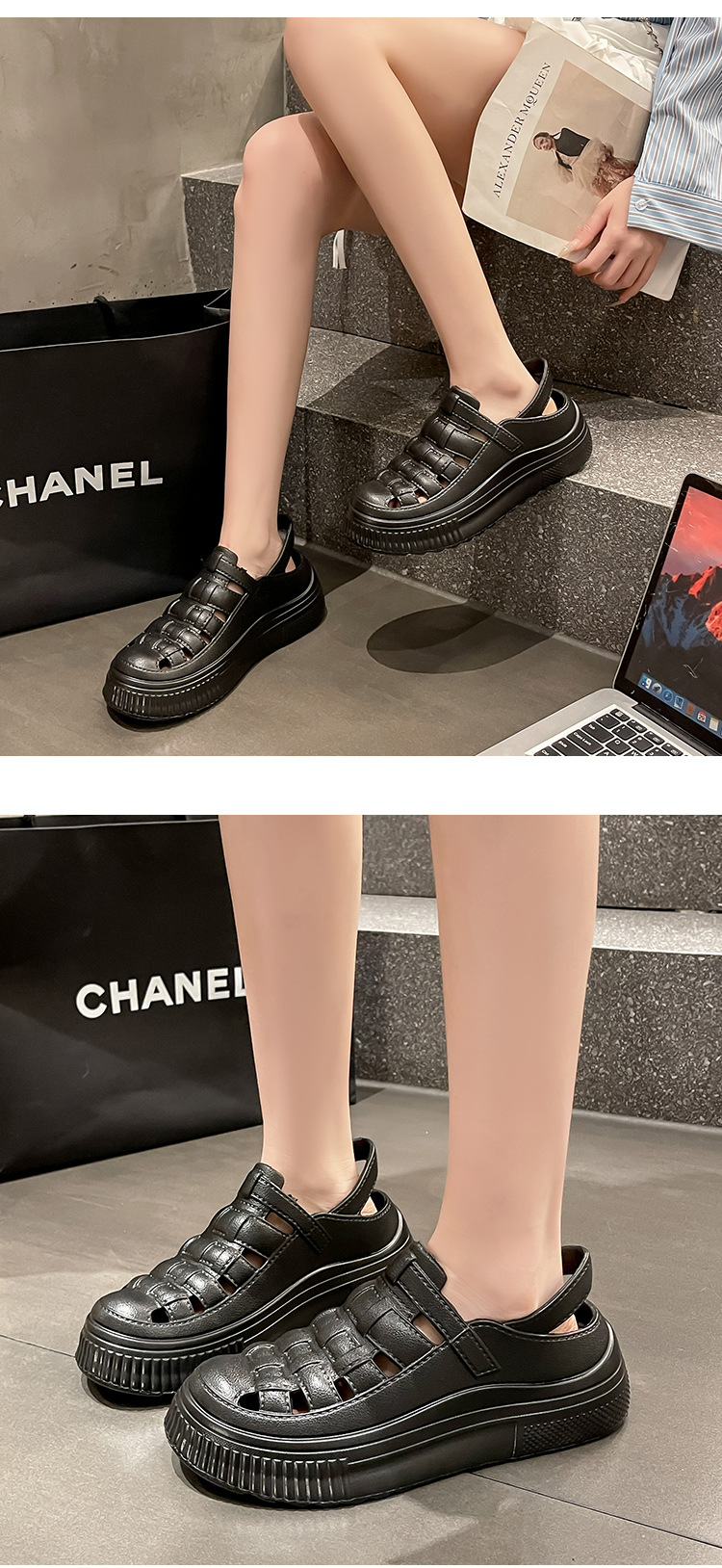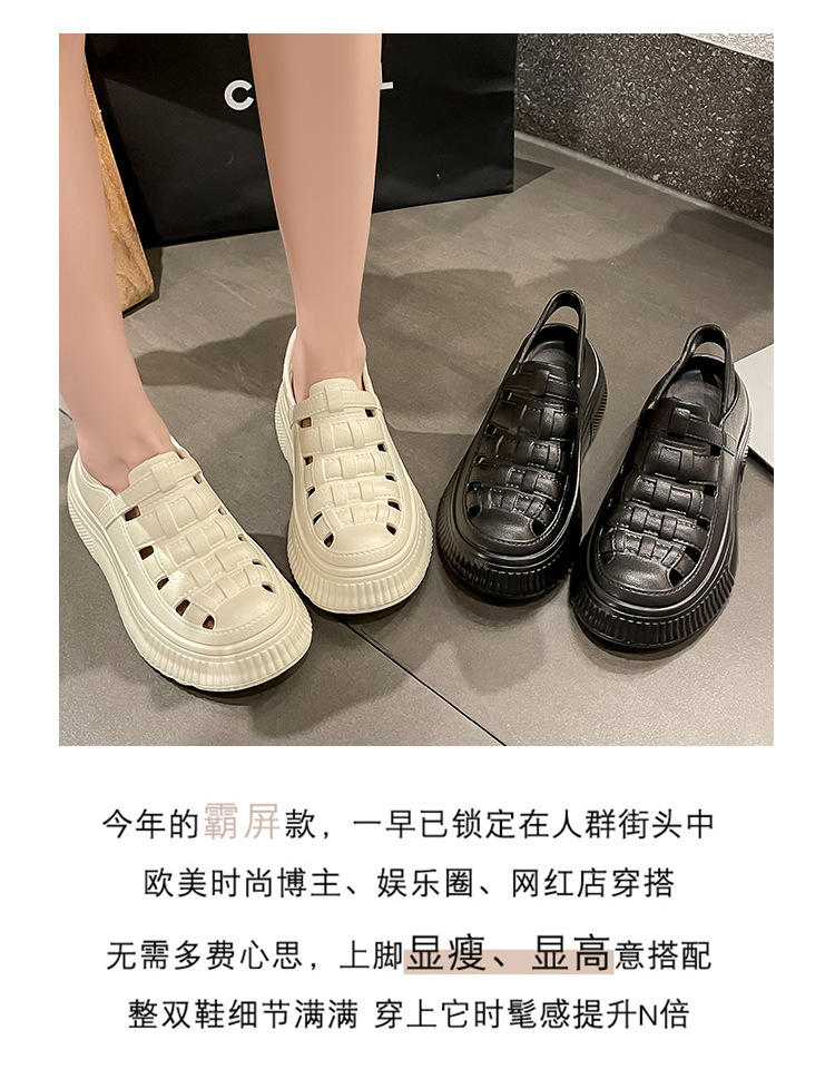 Сандалии с вырезами для женщин, уличная одежда, лето 2024, новая мода, универсальные толстоподошвенные антискользящие обувь