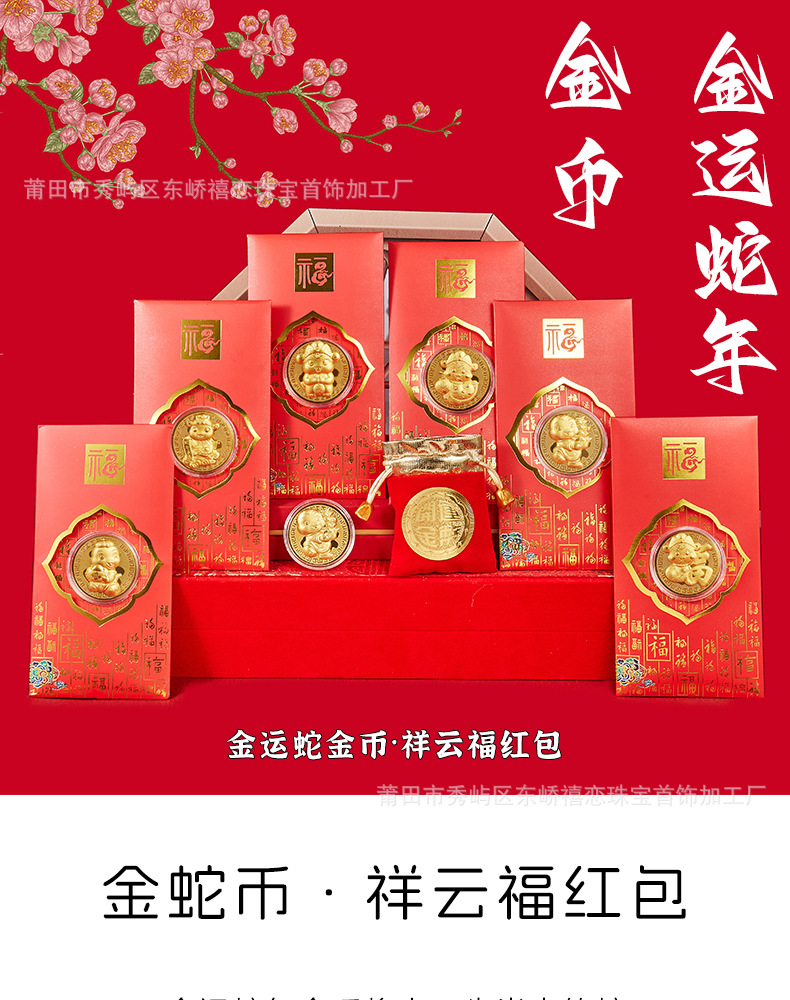 2025 год змеи, Новый год, золотая фольга, золотые монеты, памятные монеты зодиака змеи, красные конверты, подарки и сувениры