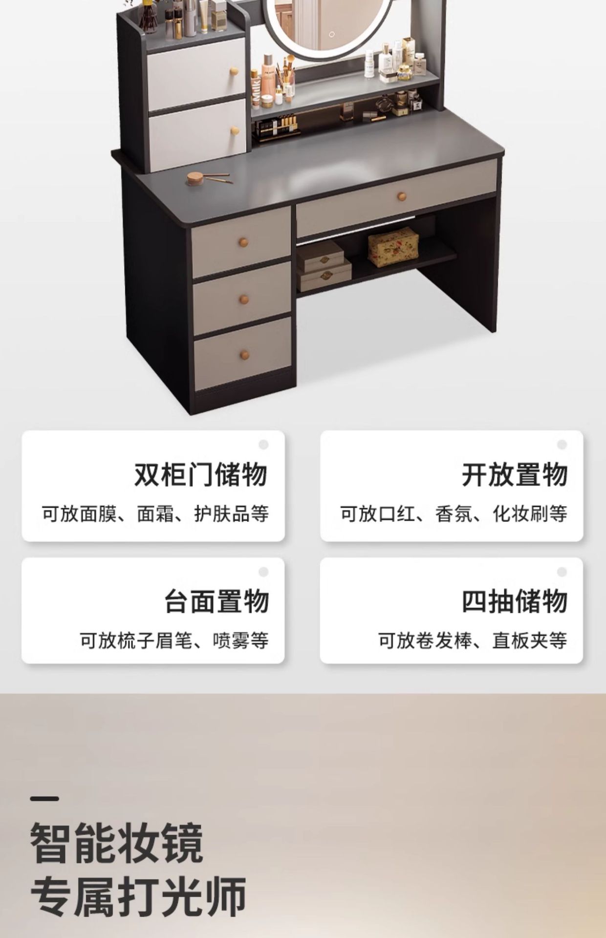 ![]() | Led lamp model [four drawers and two cabinets] 80cm light luxury gray | Neat and orderly, make up what you want (n381 qinghai does not issue) | ¥145.0 / ≈ 1 747 ₽ | 9894 | 5863488388493 | |