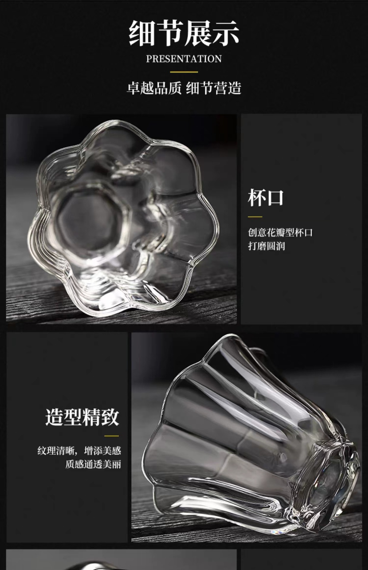 Чашка из высокобorosilicatного стекла, ароматическая чашка, чашка для дегустации чая, термостойкая, устойчивая к высоким температурам, чашка в форме лепестка