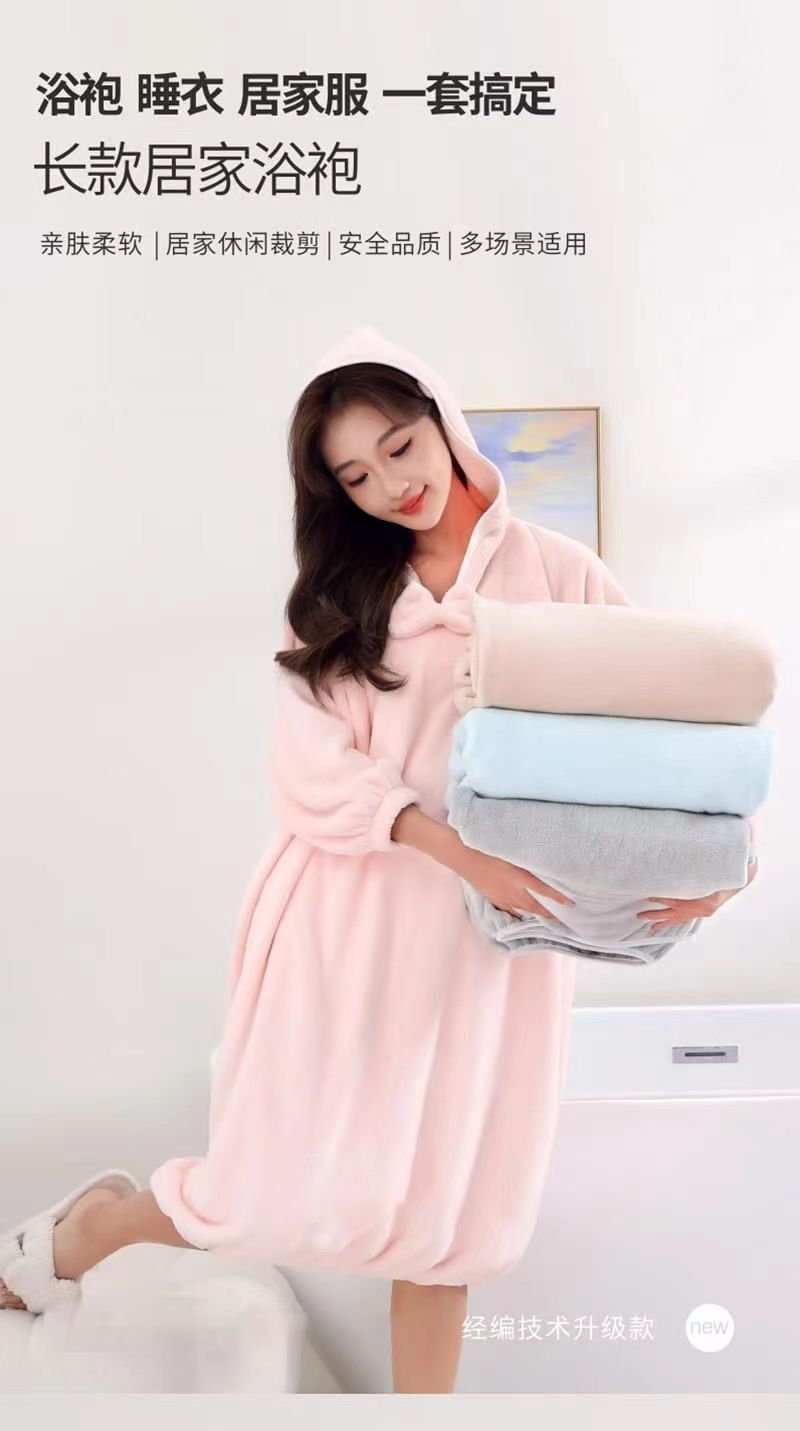 Халат из кораллового флиса для женщин, абсорбирующий, быстро сохнущий, домашний ночной халат, розовый, свободный размер, синий, серый