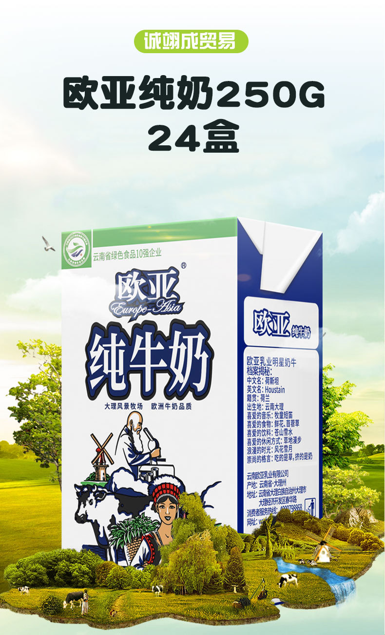 Евразийское пастеризованное молоко 250г*24 коробки, упаковано с молочных ферм плато Юннань, целая коробка для детей и студентов, оптовая цена