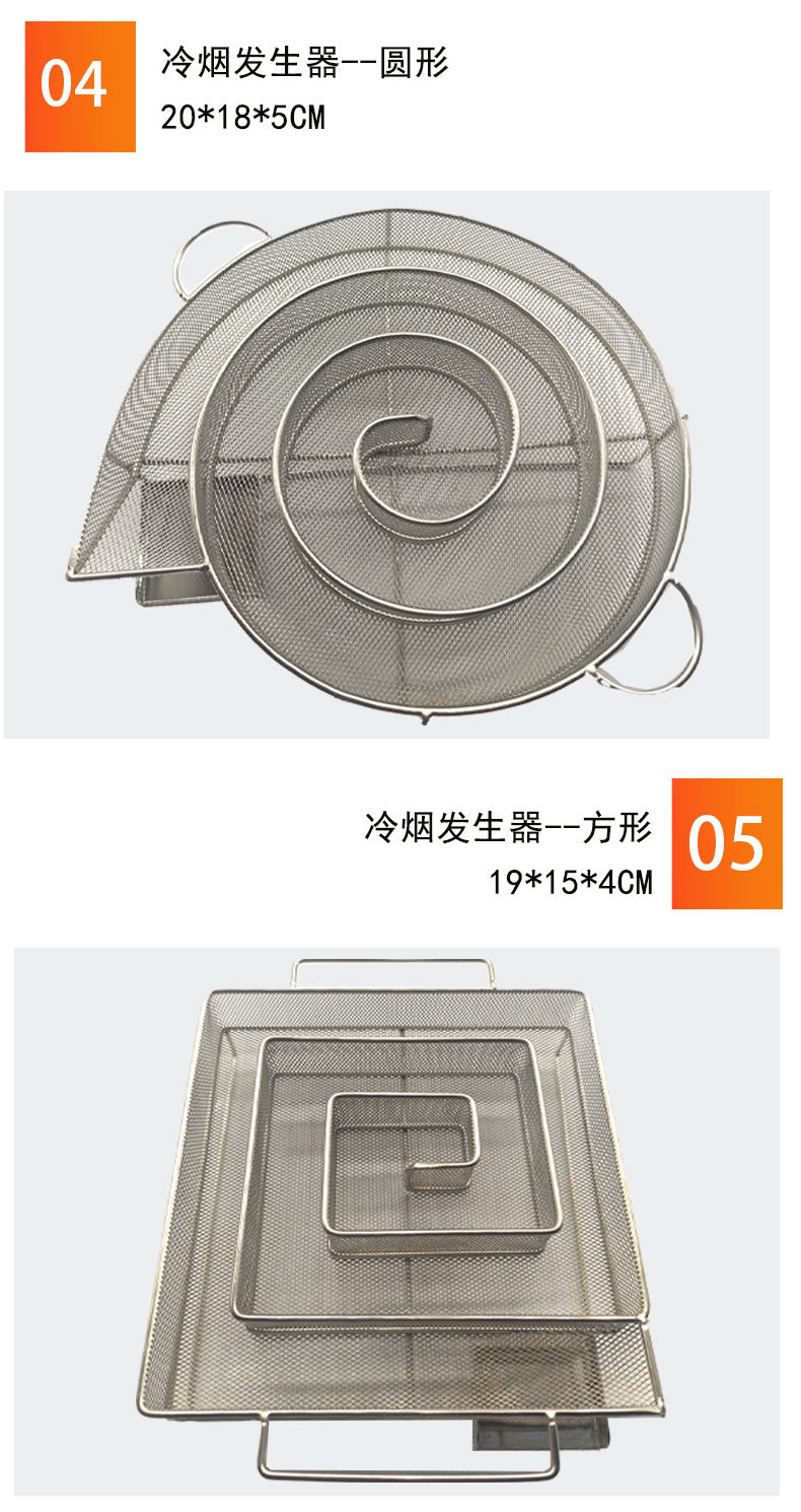 в наличии Нержавеющая сталь BBQ дымовая коробка 304 круглая квадратная холодная дымовая генераторная сетка дымовая корзина