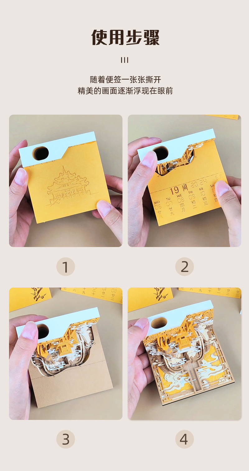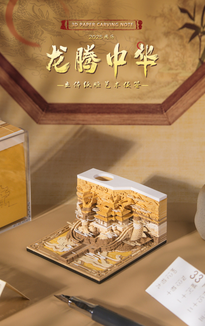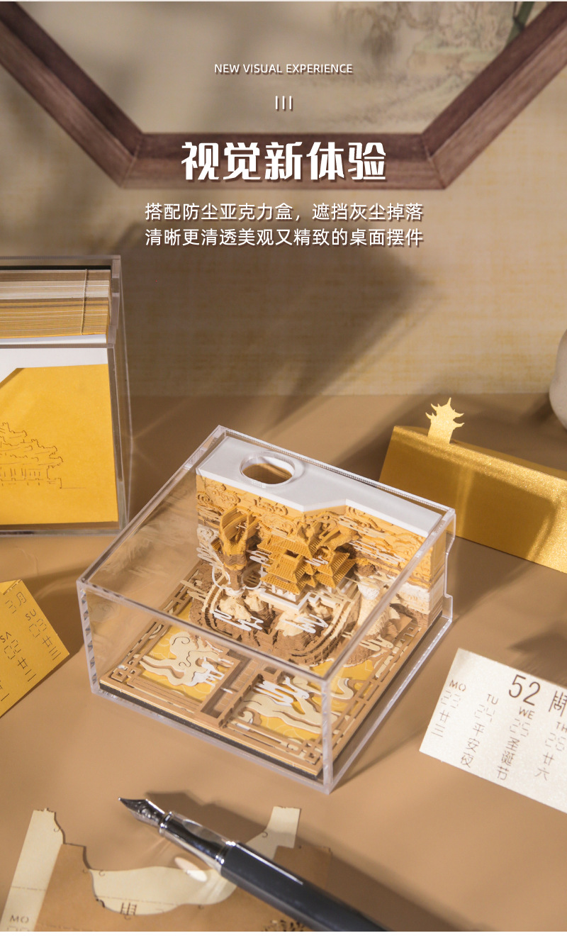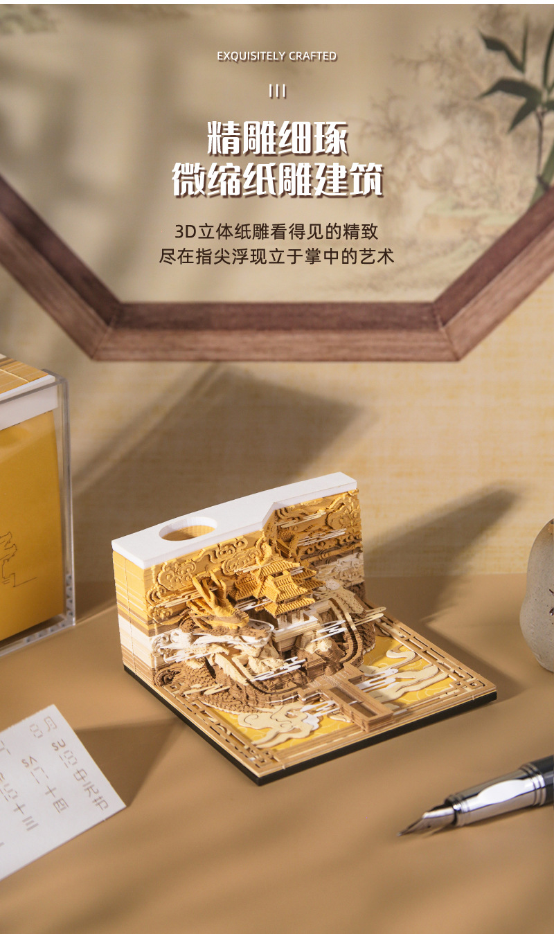 Культурный и креативный подарок 2026 года 3D поп-ап скульптура из бумаги с отрывными страницами и еженедельным календарем из Запретного города