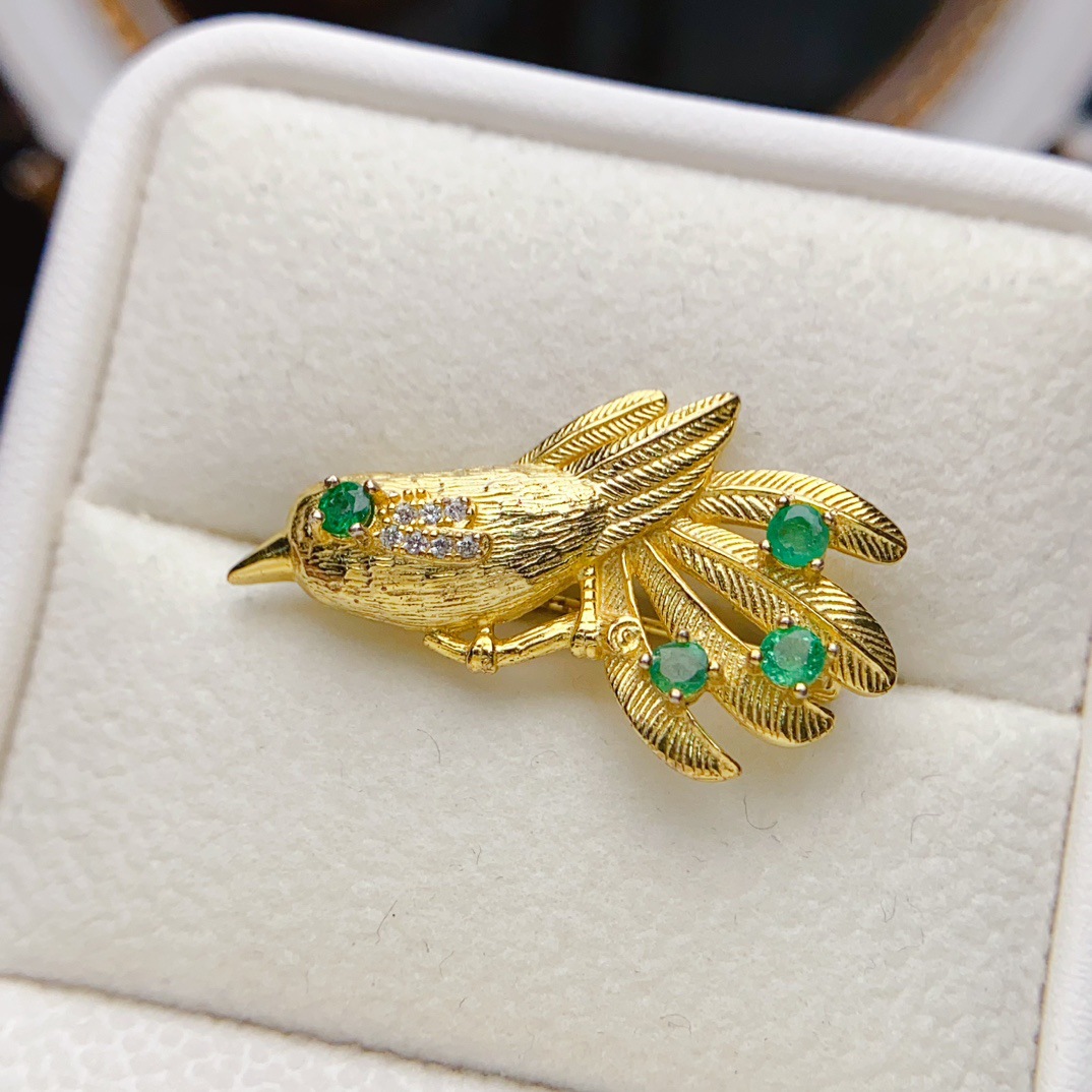 Новая брошь из натурального изумруда, инкрустированная серебром S925, основной камень 2.5мм, оптовая продажа женских украшений
