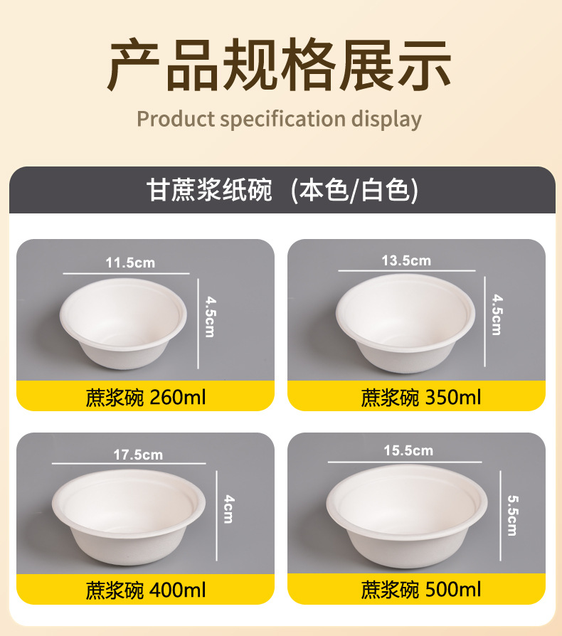 ![]() | 500ml sugarcane pulp paper bowl (original color) | ¥0.17 / ≈ 2 ₽ | 49000 | 5625087001673 |