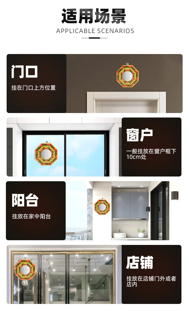 Зеркало с восемью триграммами, вогнутое и выпуклое зеркало, деревянные благоприятные украшения для дверей и окон, подвесные украшения, ремесленные изделия, оптовая продажа благоприятного фэн-шуй