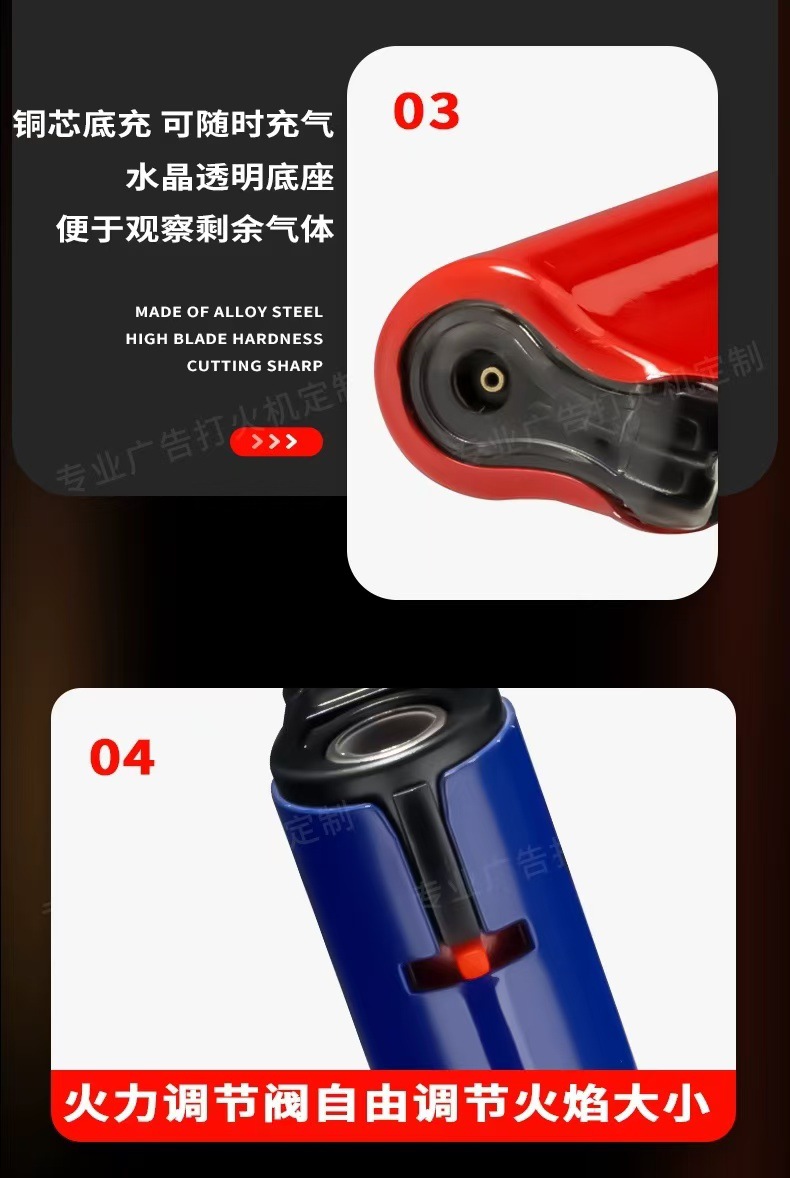 Новая одноразовая ветрозащитная зажигалка с открытым пламенем, индивидуальная печать, синий пламя, прочная металлическая зажигалка