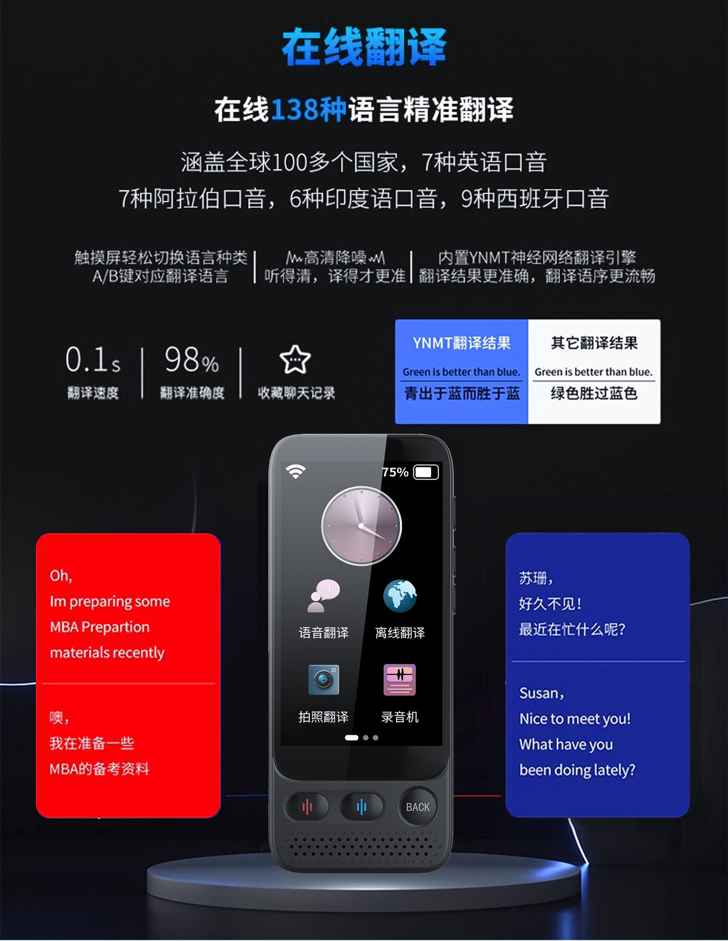 Оптовая продажа интеллектуального и точного оффлайн переводчика для глобальных малых языков, многоязычный бизнес-поездка синхронный перевод, портативный