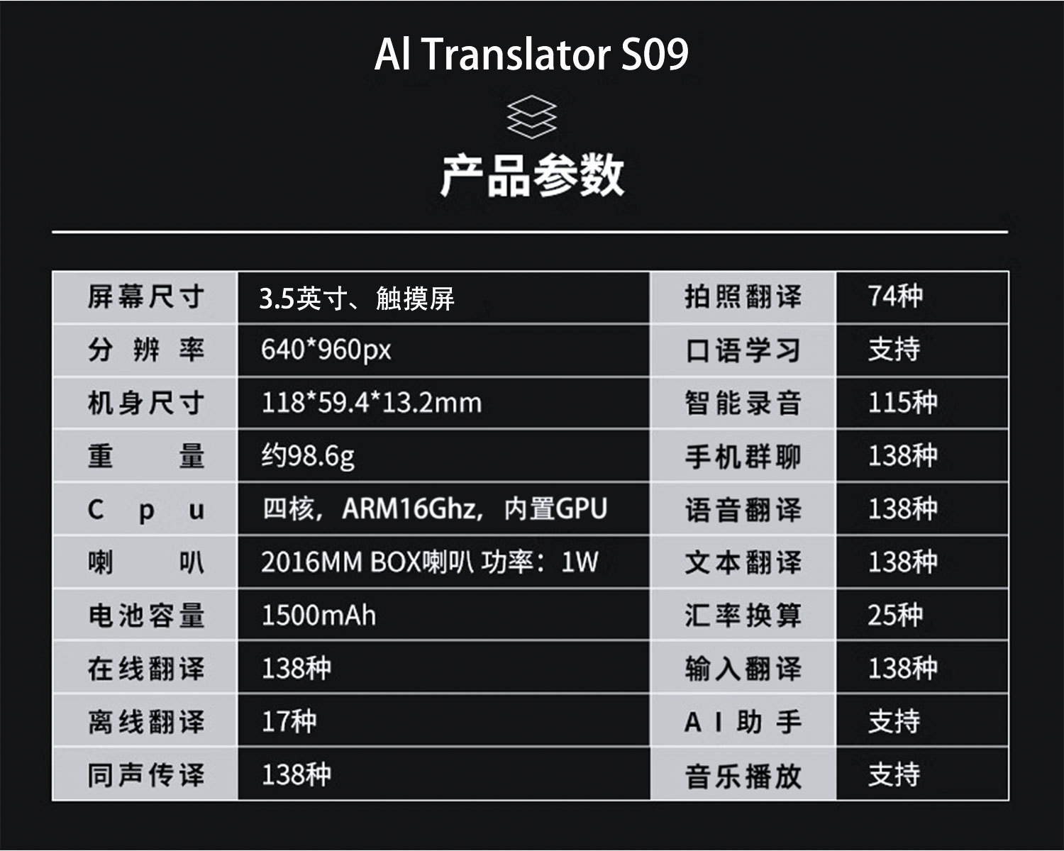 ![]() | Ink/Offline Translation/Simultaneous Interpretation/Photo Translation/Audio Translation | 168*85*40mm ultra-thin card translator | 1шт: ¥269.00, 50шт: ¥259.00, 100шт: ¥239.00 | 36 | 5931505418711 |