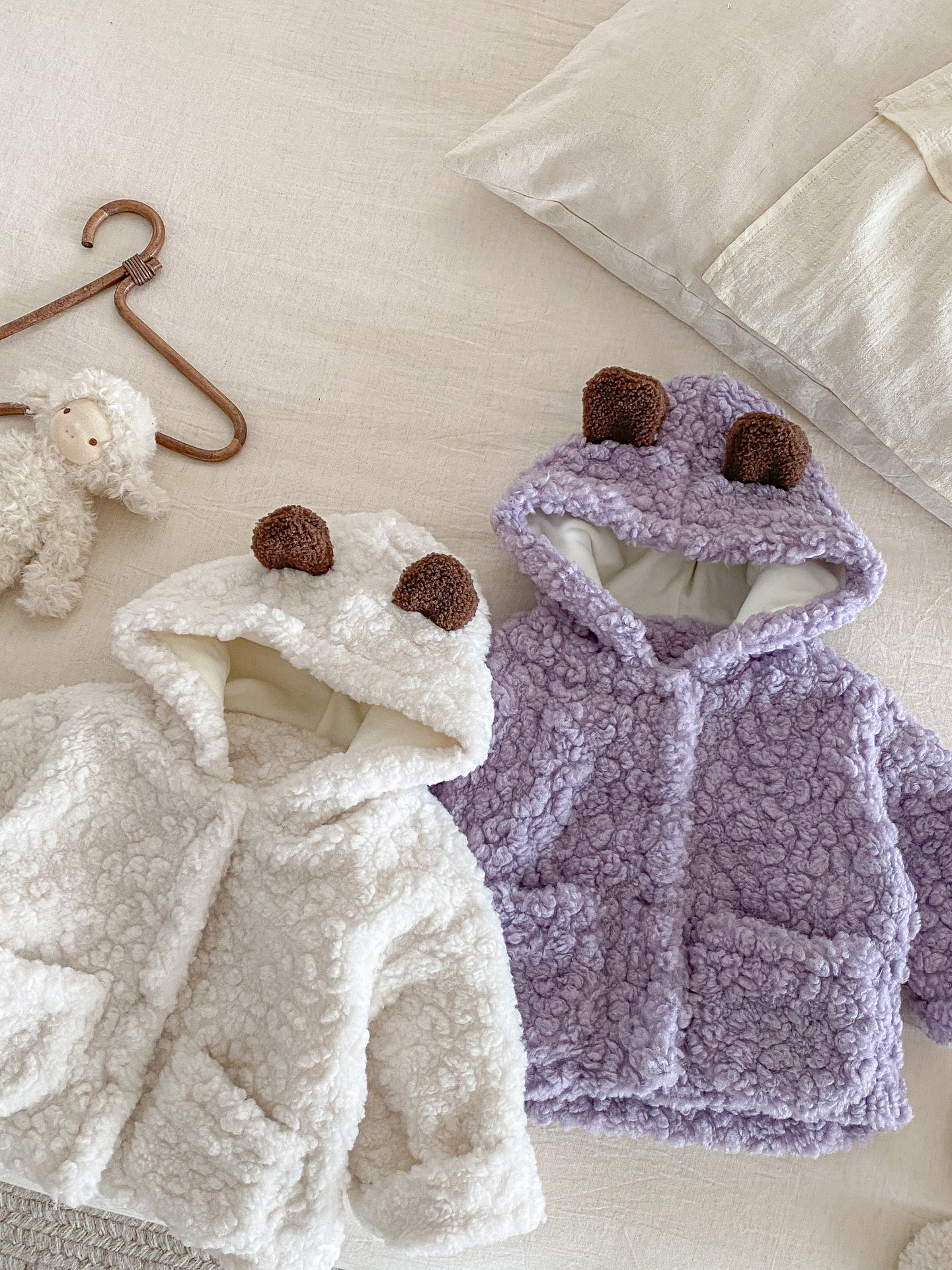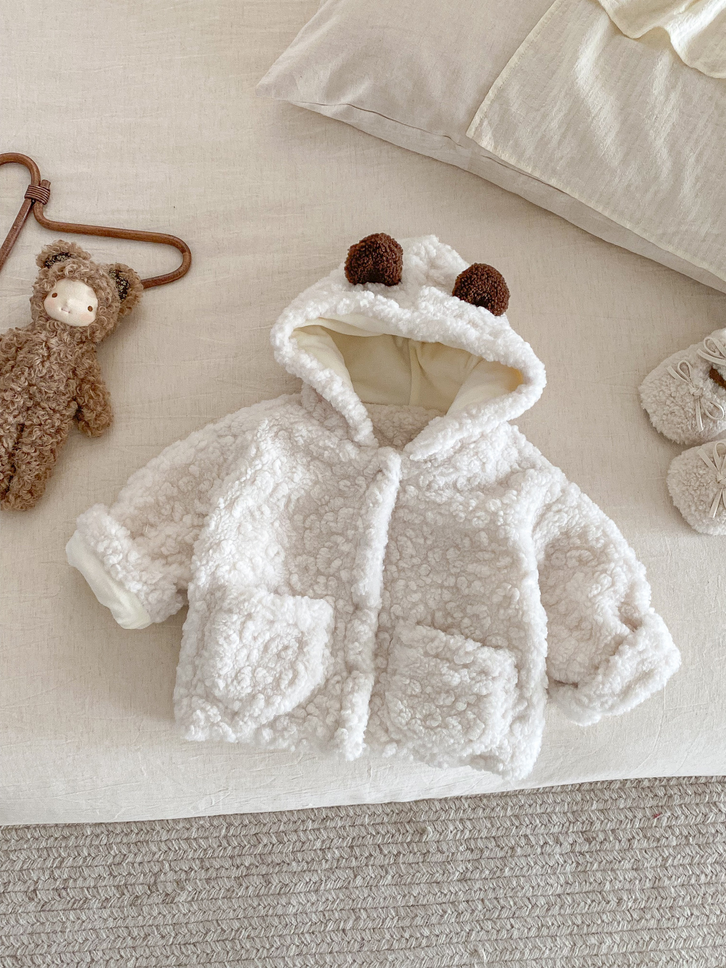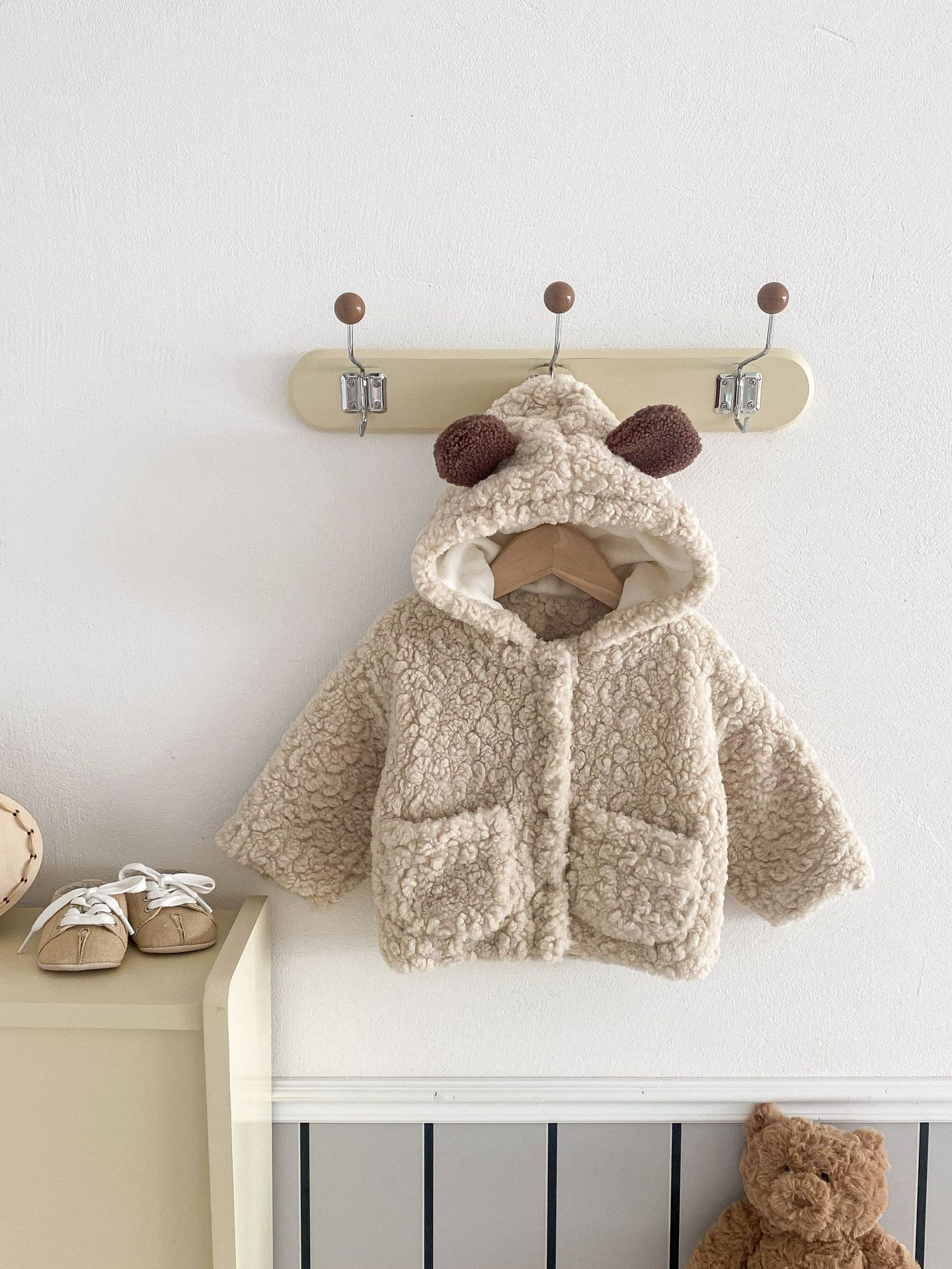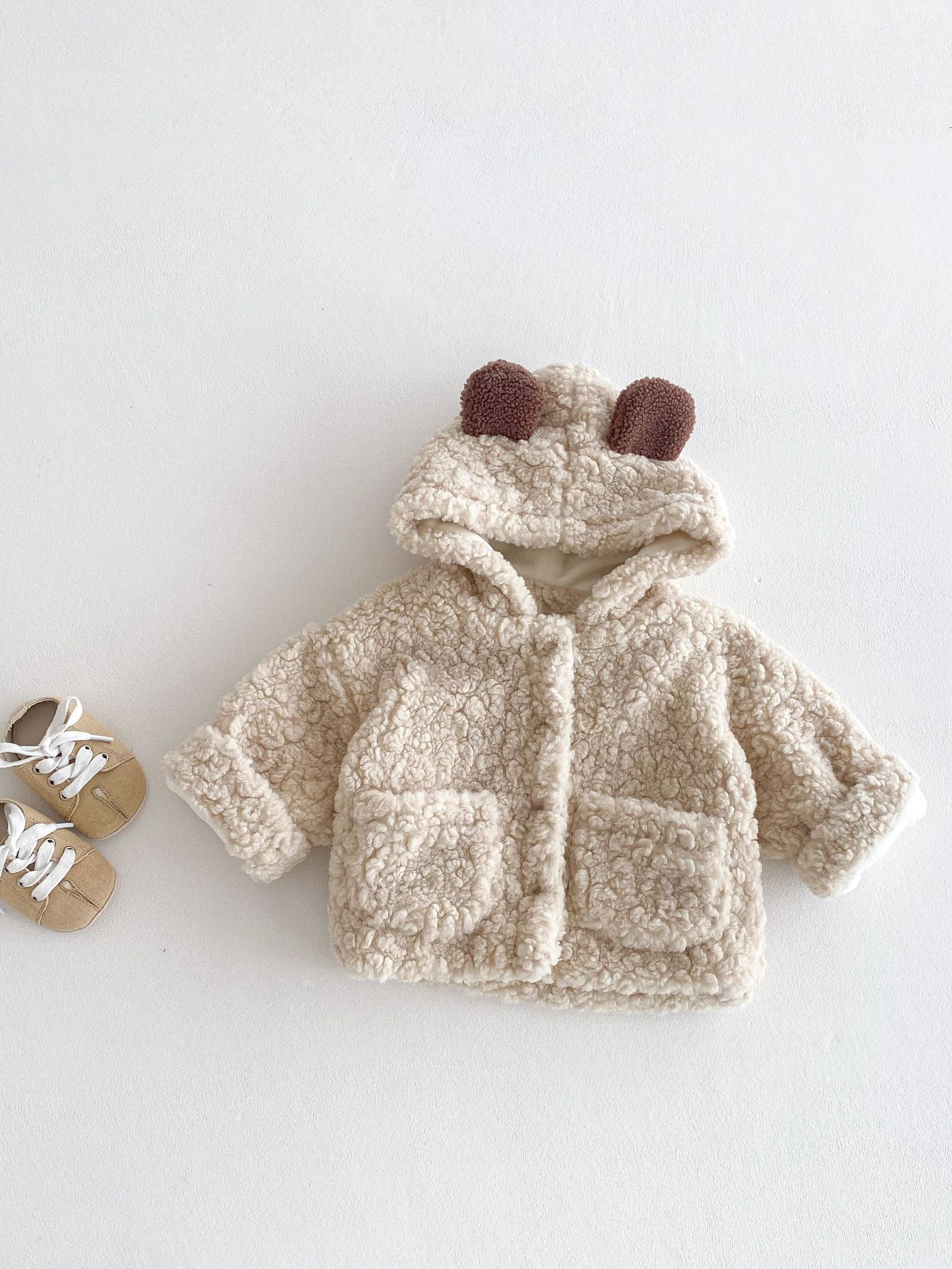 Куртка для младенцев с капюшоном в виде медвежьих ушей, утолщенная, зимняя, уютная флисовая кофта для мальчиков