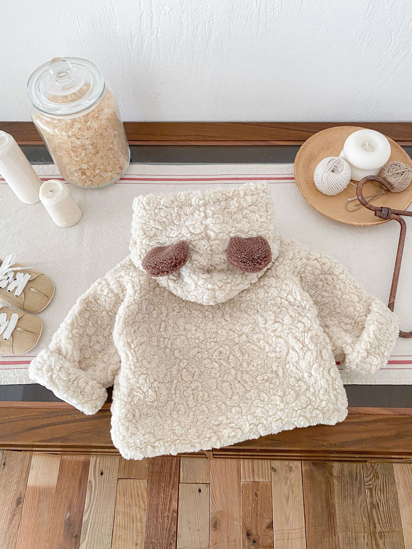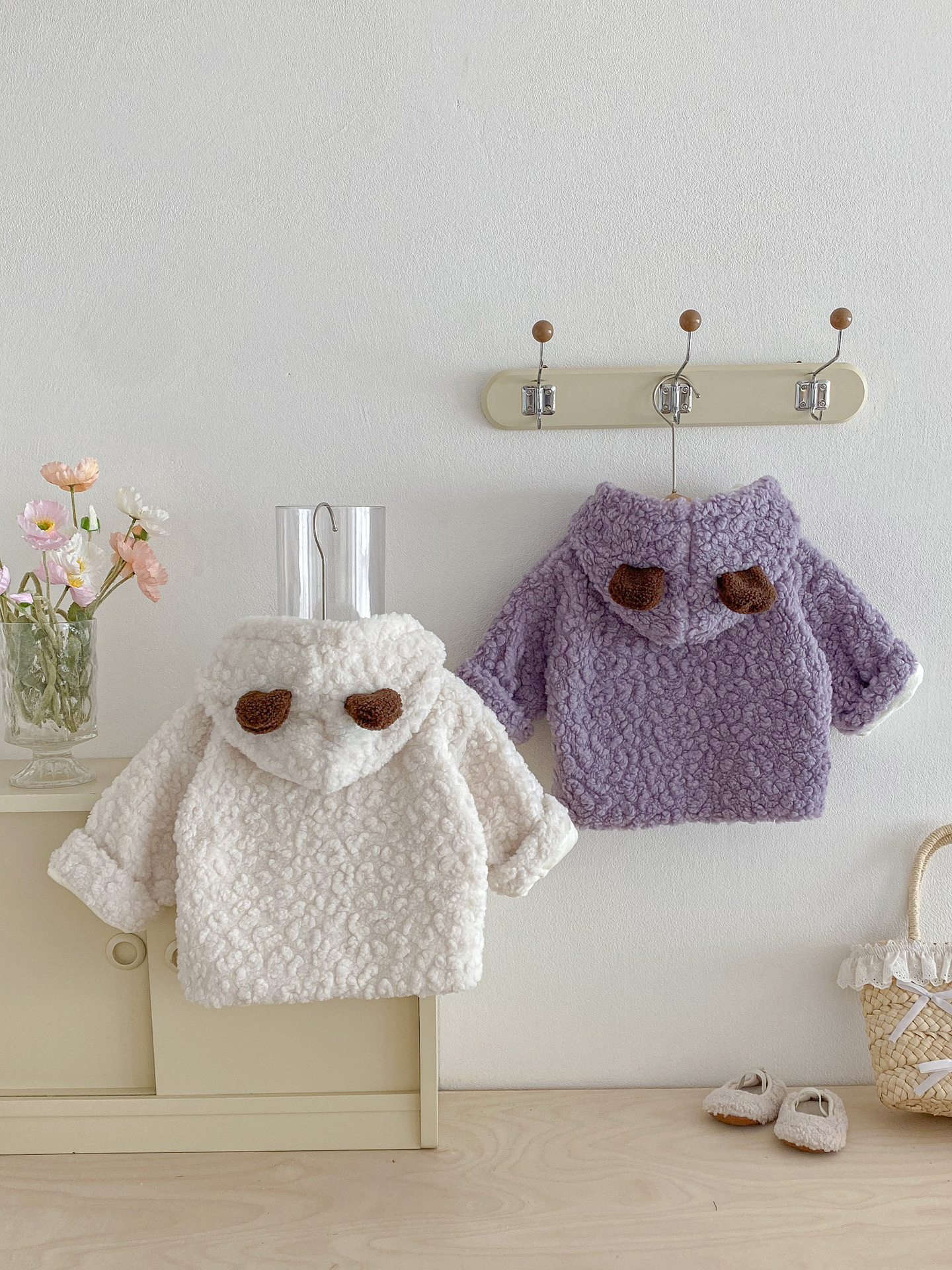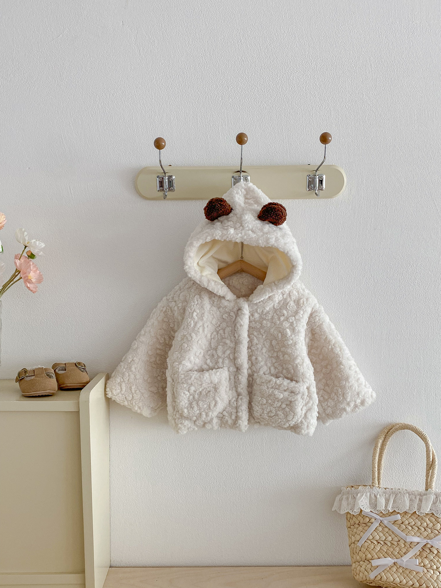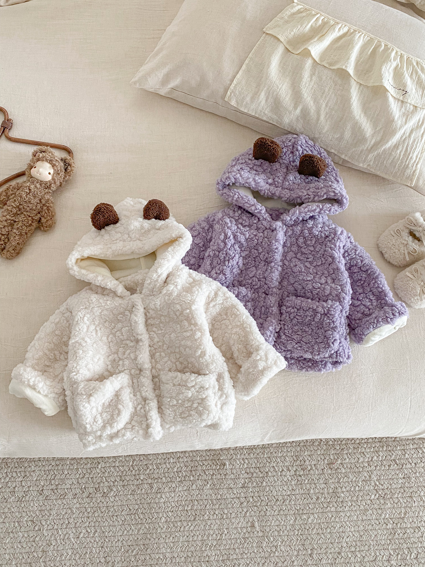 Куртка для младенцев с капюшоном в виде медвежьих ушей, утолщенная, зимняя, уютная флисовая кофта для мальчиков