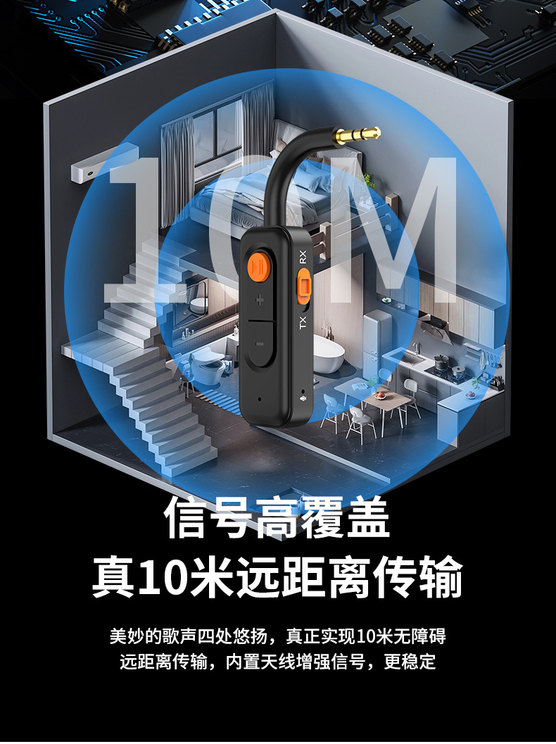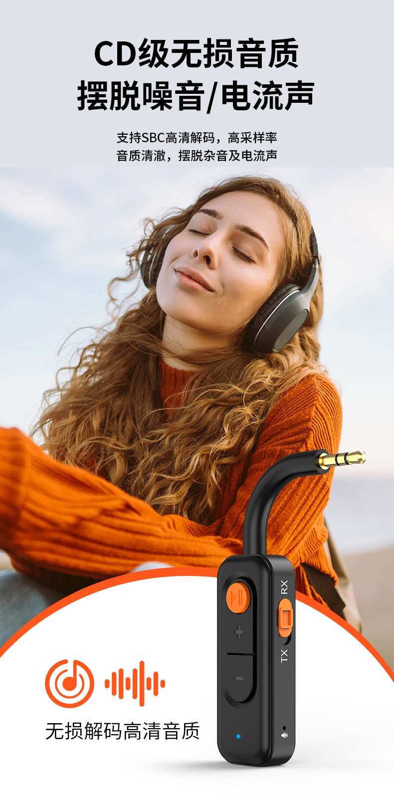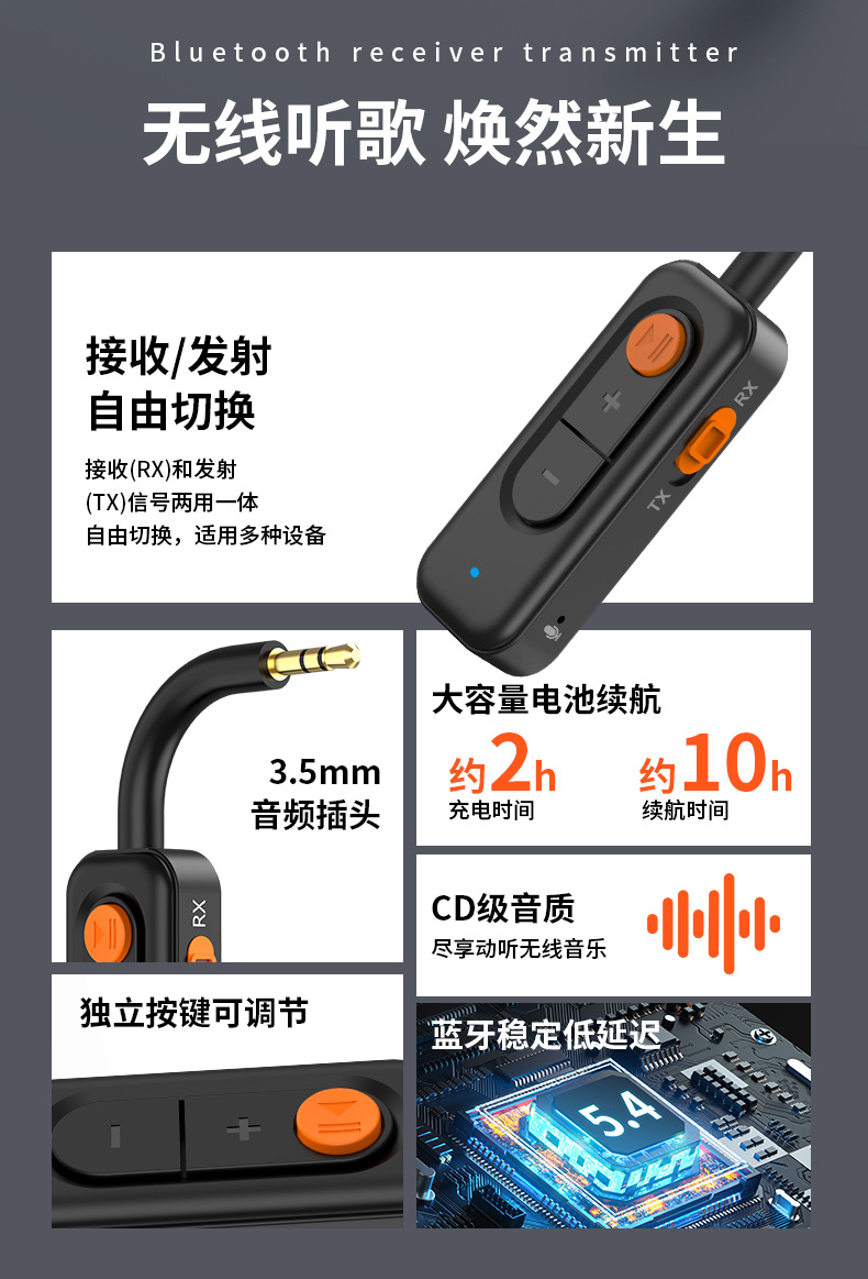 Bluetooth адаптер 5.4, приемник и передатчик 2 в 1, поддержка одного подключения и двух устройств, подходит для домашнего аудио и автомобилей