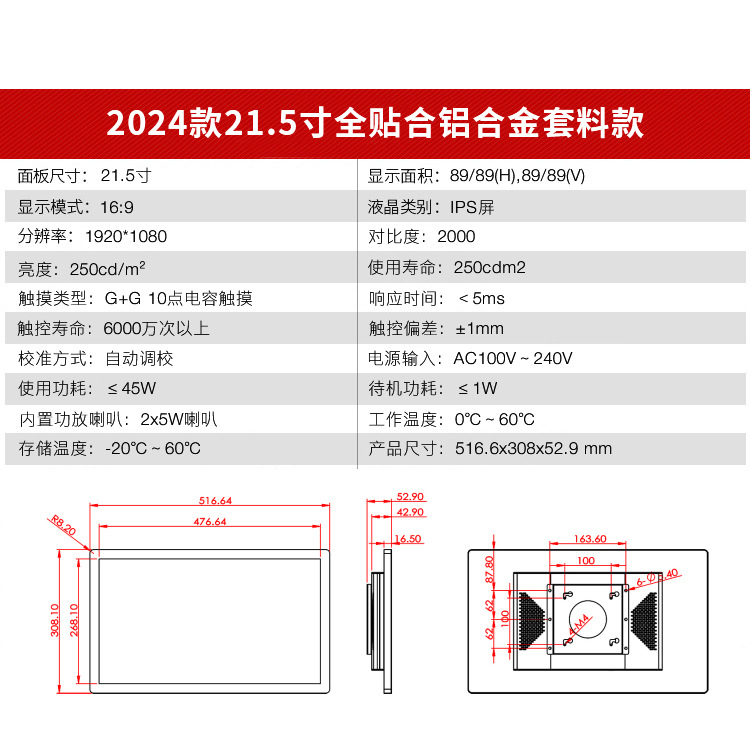 21.5 дюймовый промышленный дисплей с высоким разрешением емкостный сенсорный IPS экран LCD монитор с процессором i3 i5 i7 Android