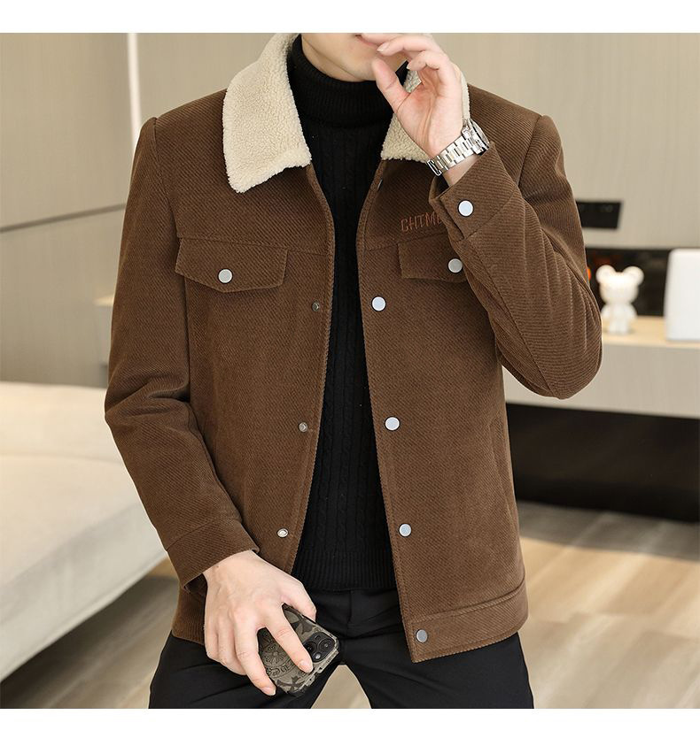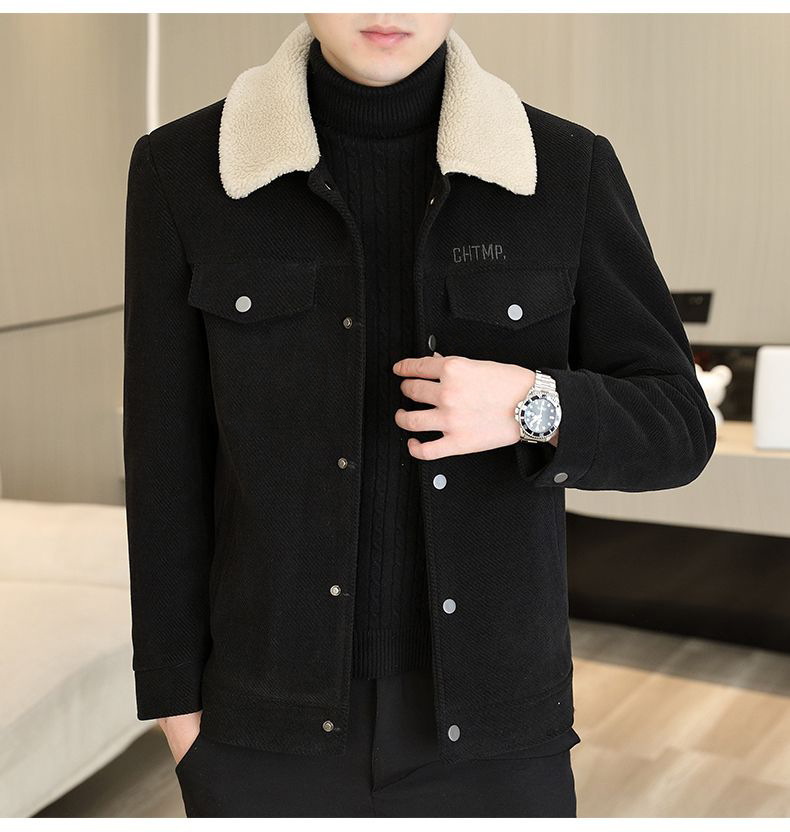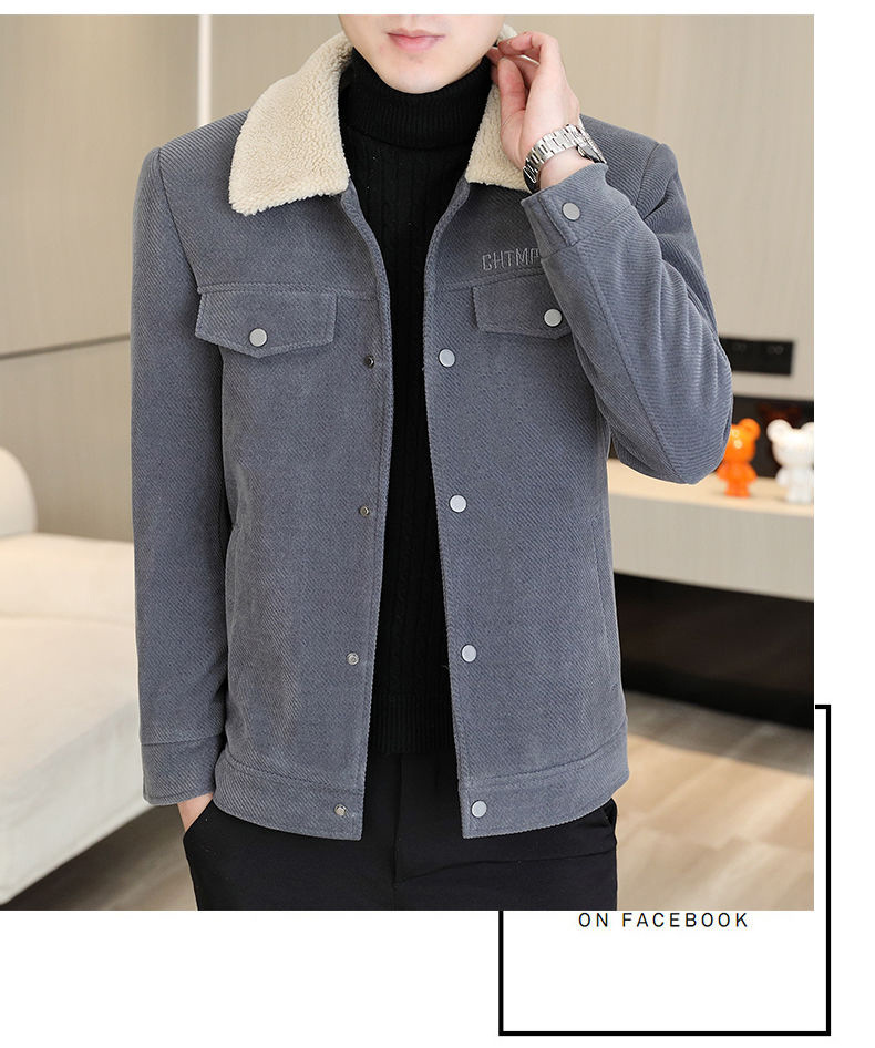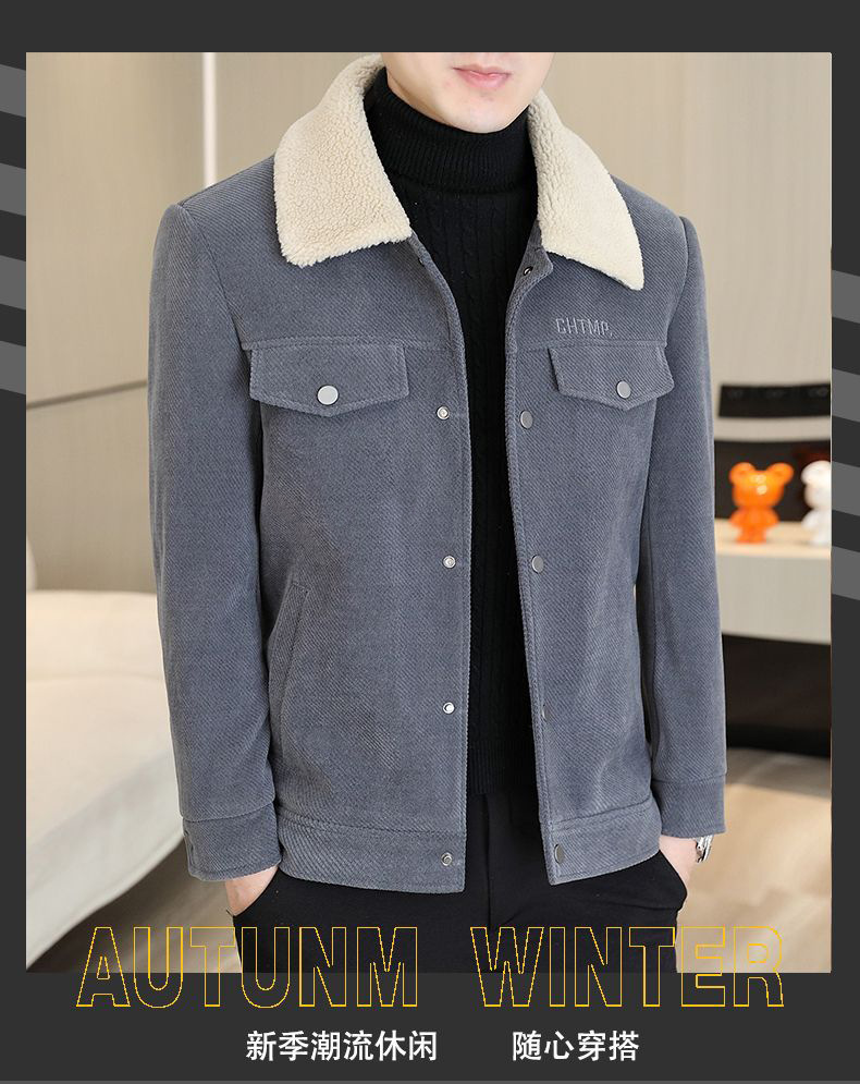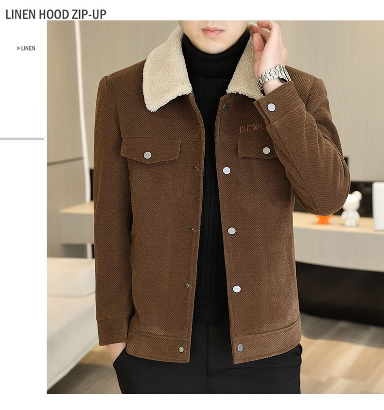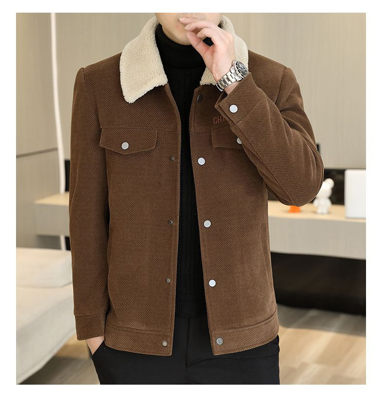Мужская осенне-зимняя куртка с воротником, однотонное пальто с меховым воротником, арктический бархат, утепленная, для среднего возраста