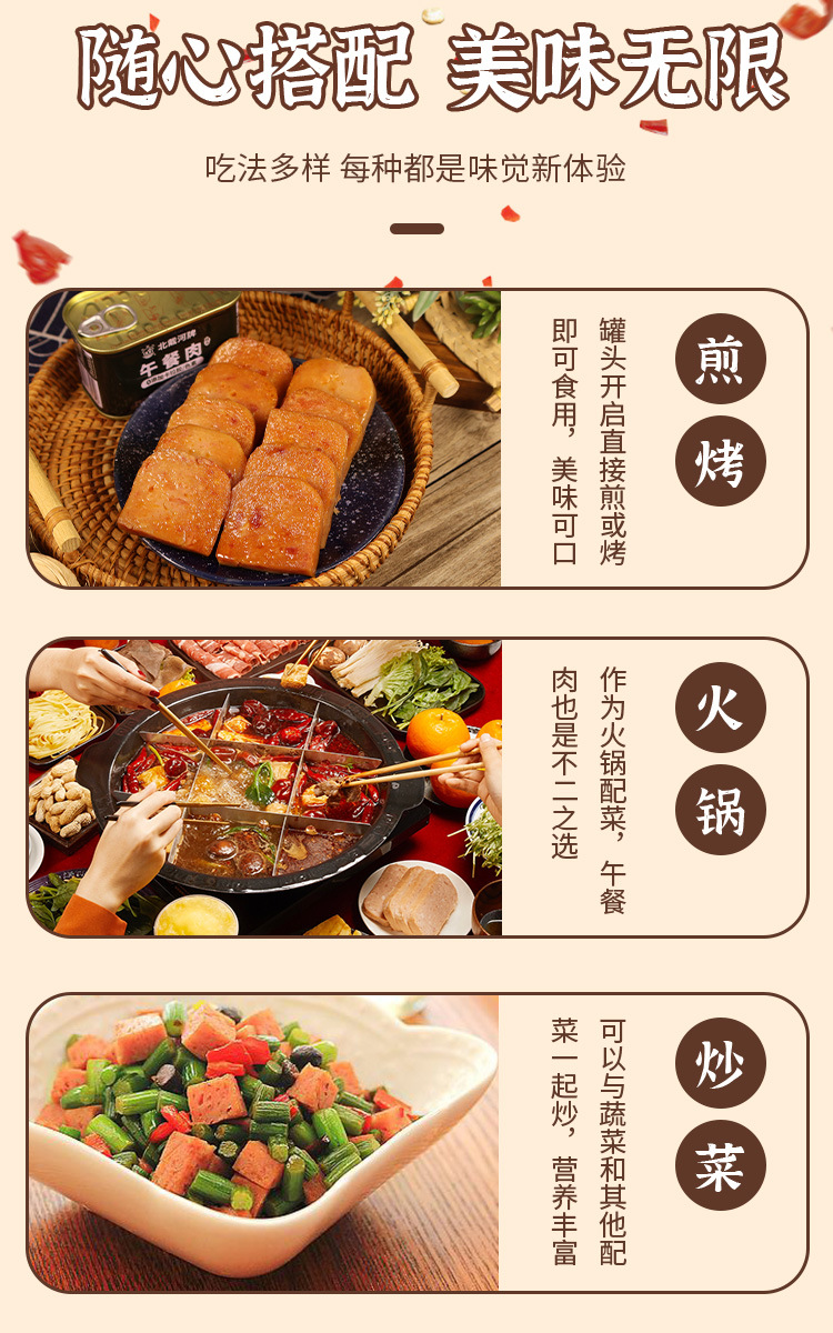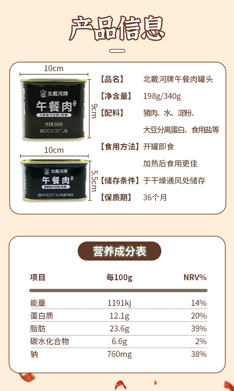 Консервированное мясо для завтрака Beidaihe 198г * 24 банки для семейного горячего блюда, экстренный запас пищи
