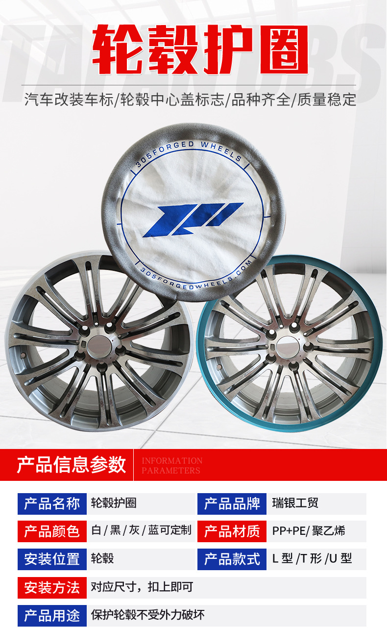 Обработанное колесное крепление, Т-образное защитное кольцо, индивидуальное белое черное серое синее многоцветное защитное кольцо для автомобильного колесного диска