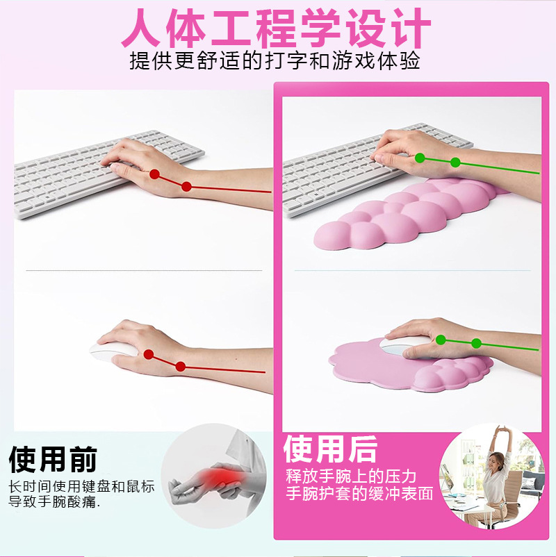 办公纯色鼠标垫护腕云朵键盘手托 硅胶手腕垫腕托防滑鼠标手护腕